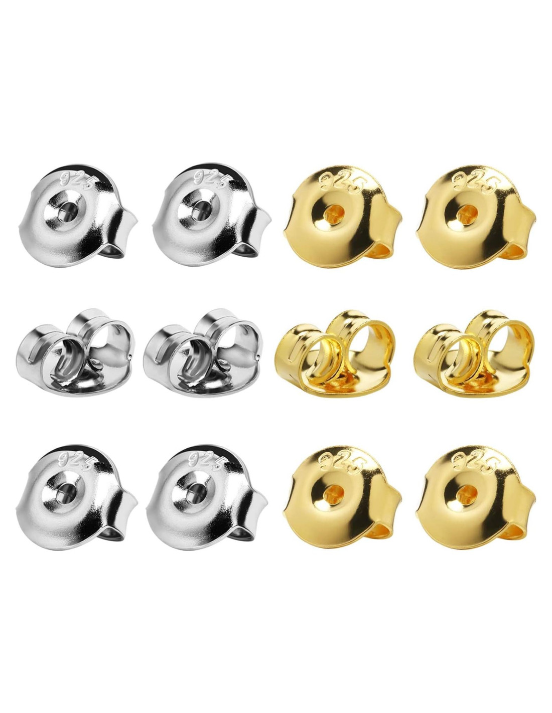- Empaque de 6 Pares 3 Pares de Respaldo de Pendientes Color Oro Blanco y 3 Pares de Color Oro están incluidos. Dos colores opcionales: color plata blanca y color oro están disponibles. Con un diseño pequeño y compacto, estos respaldos de pendientes son fáciles de almacenar y llevar contigo.