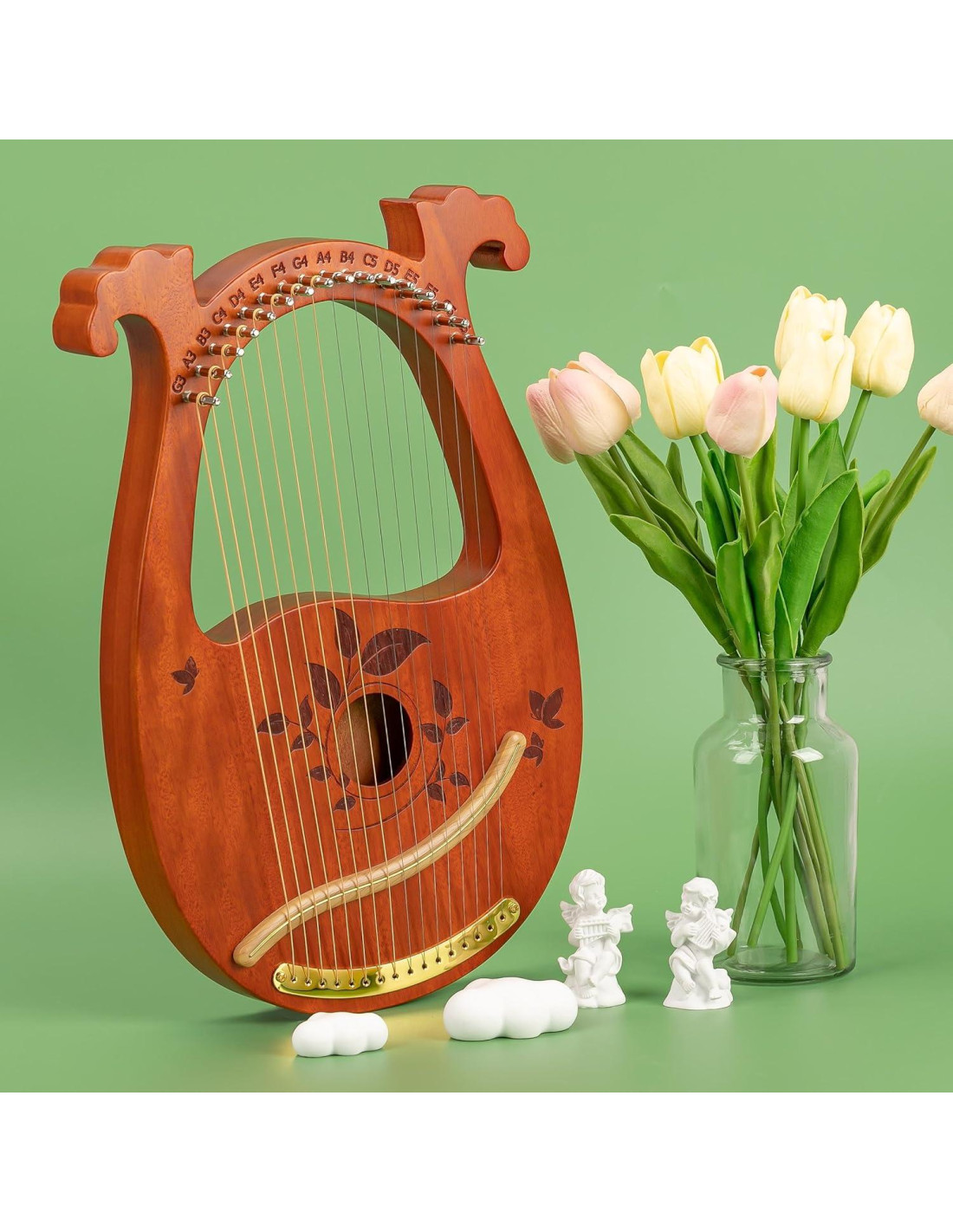 - Excelente calidad de sonido: El arpa de lira está tallada en caoba sólida de alta calidad, y el diseño de la caja de resonancia en el medio hace que el sonido del arpa sea más rico, más fuerte y más agradable. La caoba de alta calidad y alta densidad asegura la perfección del timbre del arpa.