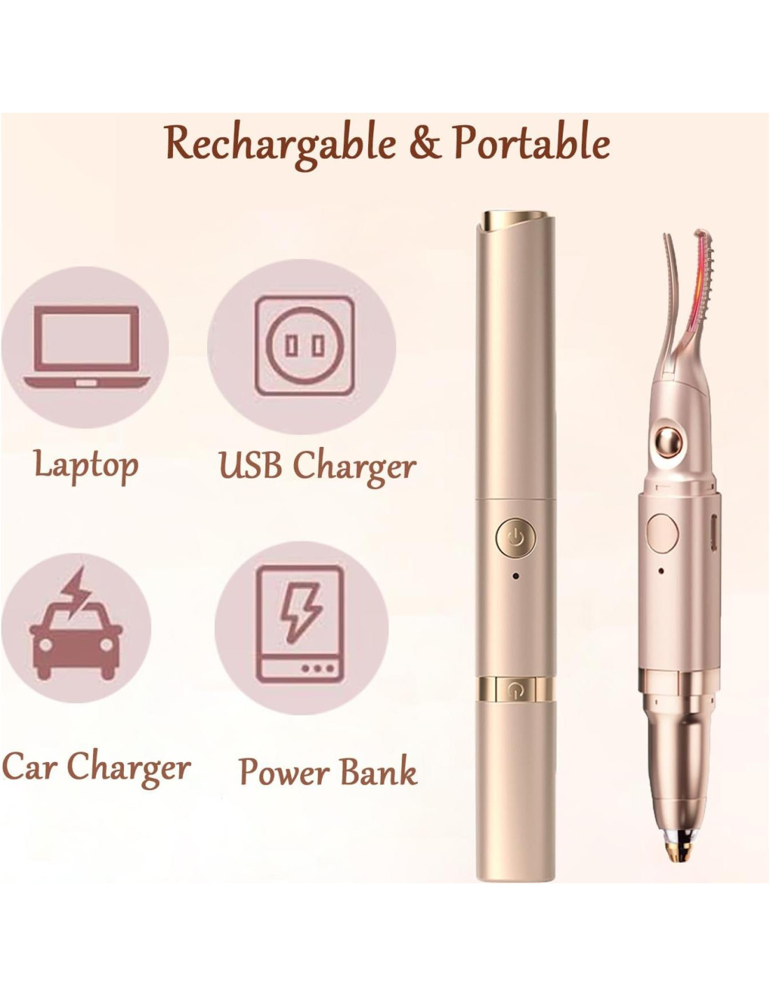 - [Carga Tipo-C] El recortador de cejas eléctrico 2 en 1 y el rizador de pestañas eléctrico son recargables por USB, utilizando carga Tipo-C para ahorrar en costos de batería. Su versatilidad permite cargar con varios tipos de cargadores, computadoras y bancos de energía, asegurando un viaje sin preocupaciones y la capacidad de cargar en cualquier momento y lugar.