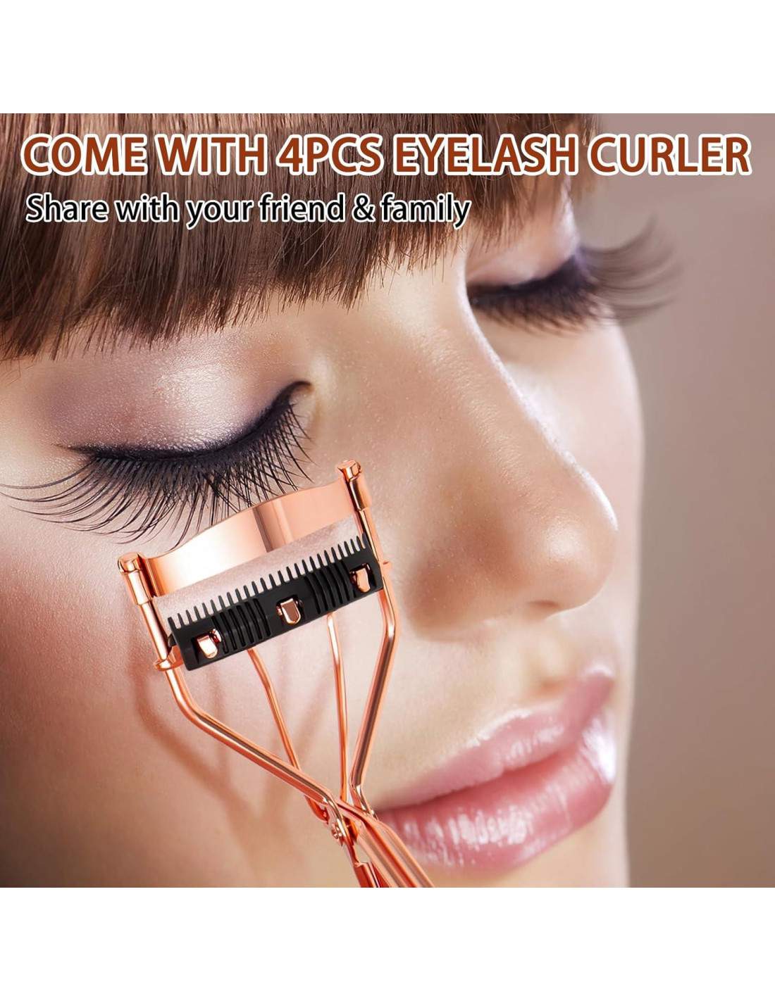 - Empaque: 4Pcs rizadores de pestañas color oro rosa con peine incorporado.