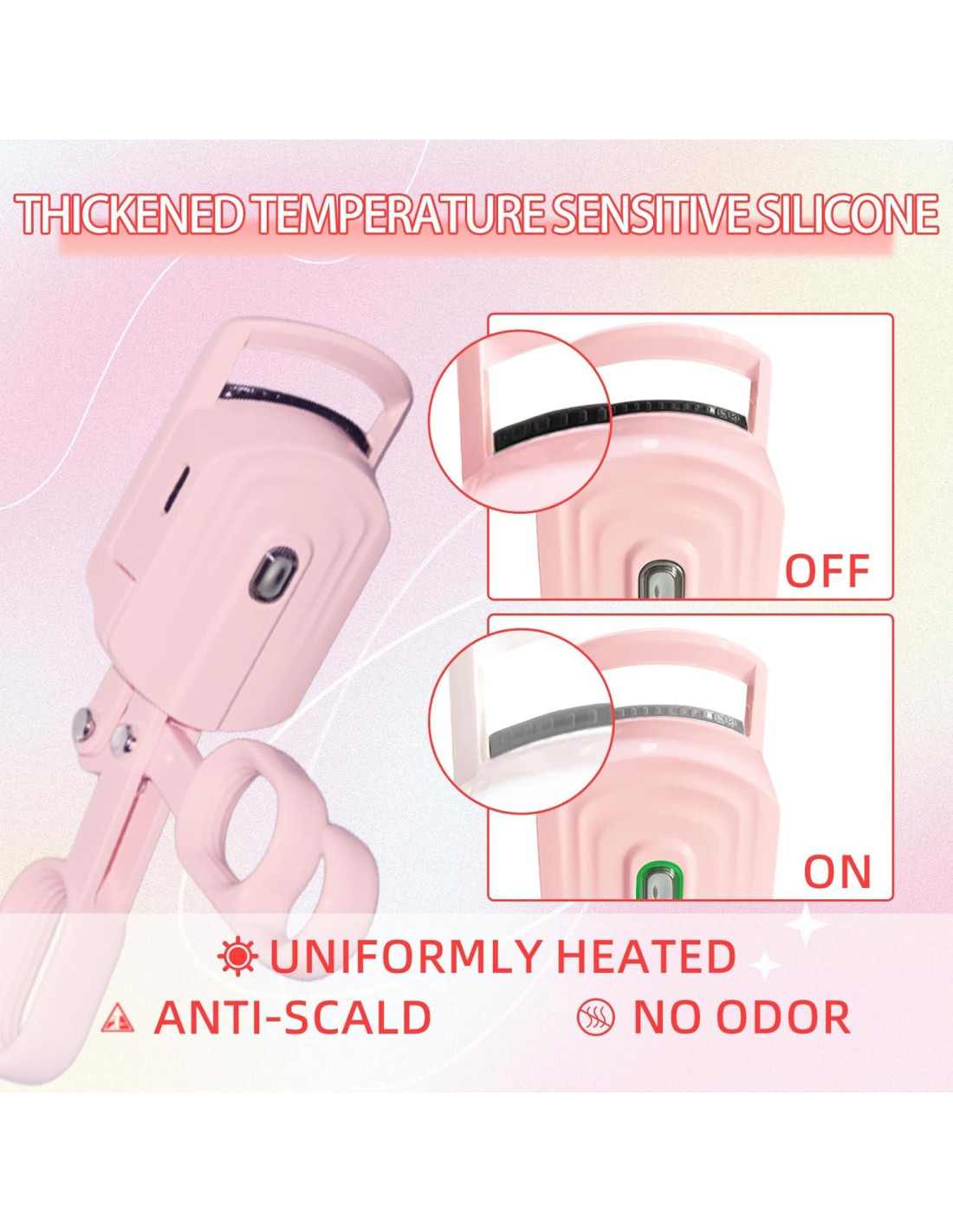 - RIZO DURADERO Rizador de pestañas calentado utiliza silicona sensible a la temperatura de alta calidad y gruesa, que no solo no tiene olor después de calentar, sino que también previene eficazmente quemaduras en la piel. Los rizadores de pestañas calentados pueden mantener tus pestañas rizadas durante mucho tiempo, y también evitan el daño causado por otros métodos de rizado.