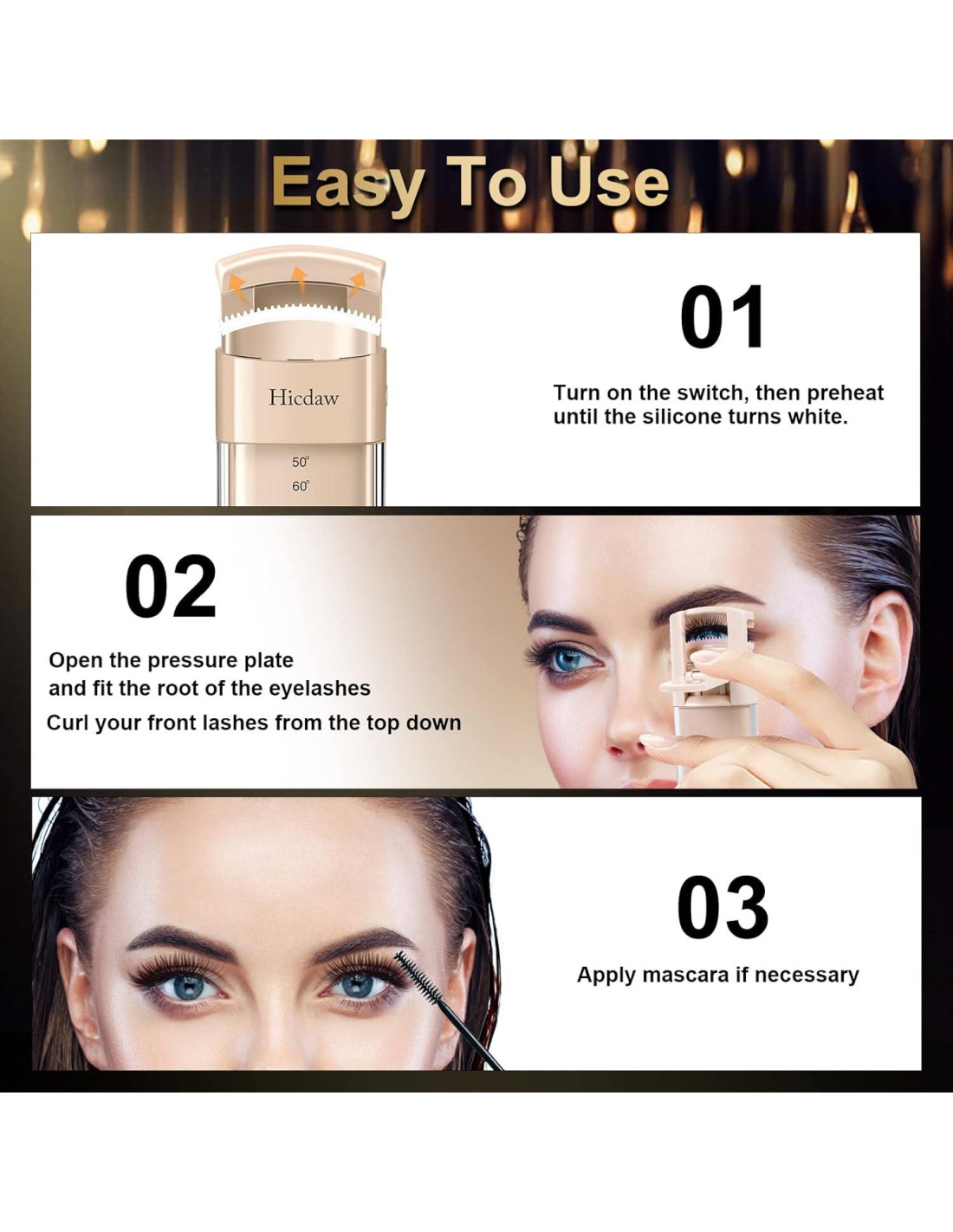 - GRAN REGALO - El mini set de maquillaje de rizador de pestañas viene con un empaque exquisito. Puedes regalar un rizador de pestañas eléctrico a tu amante, hija o amiga en la vida diaria, cumpleaños, Día de San Valentín, Navidad y otros festivales.
