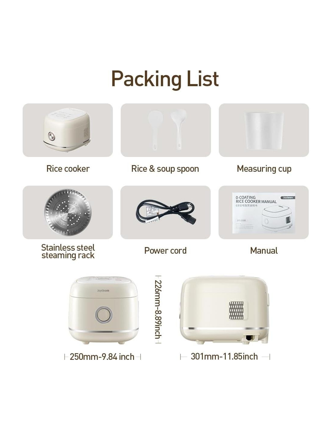 - Olla Interna de Acero Inoxidable Saludable y Duradera: El Cocedor de Arroz Joydeem DFB-D300 cuenta con una olla interna de acero inoxidable 316L que es más resistente al desgaste y está diseñada para durar. El diseño sin recubrimiento asegura que no haya preocupaciones sobre el pelado, haciéndolo seguro y saludable, perfecto para familias conscientes de la salud.