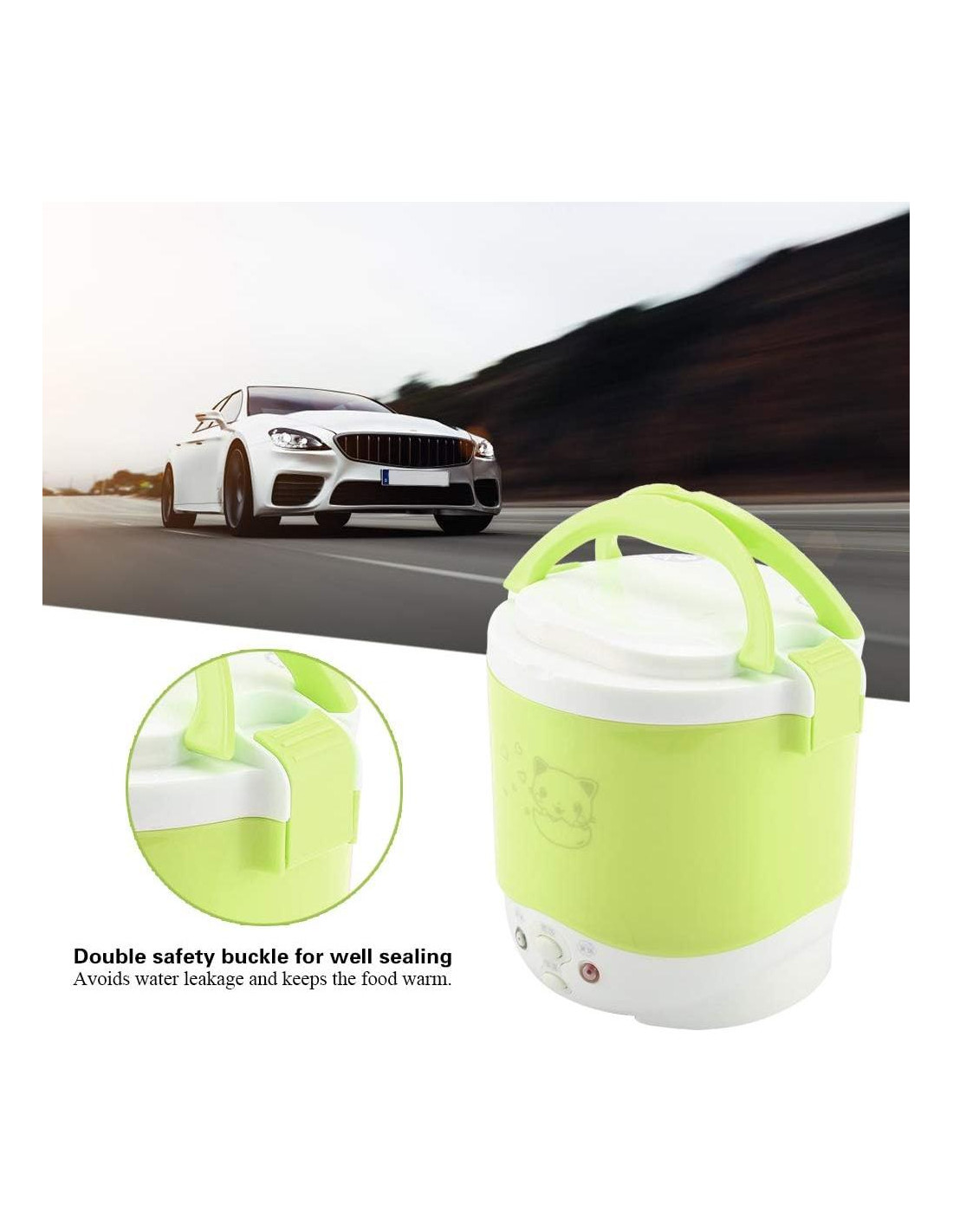 - Mini Olla Arrocera con Buena Estanqueidad: La olla portátil tiene doble hebilla de seguridad para un buen sellado, evita fugas de agua y mantiene la comida caliente; La olla arrocera portátil es adecuada tanto para el hogar como para coches (12V); La olla arrocera multifuncional está disponible para que cocines arroz, gachas, huevos nutritivos y platos calientes al mismo tiempo