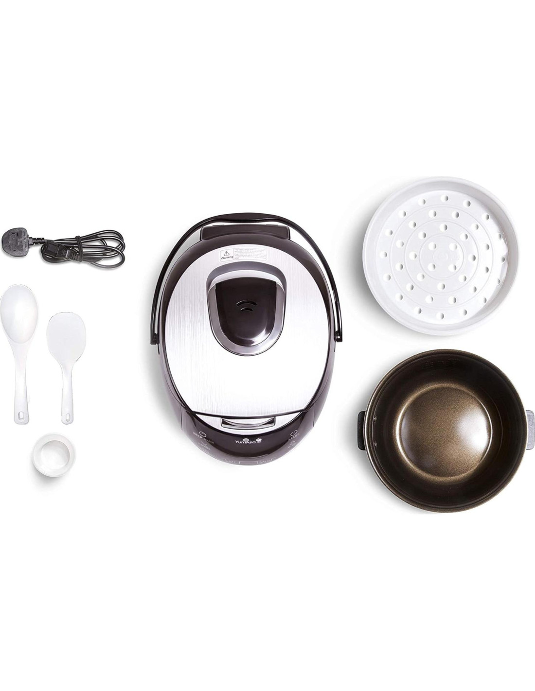 - Tazón interior de cerámica recubierto de 2mm de 5 CAPAS NINJA DE ALTA CALIDAD - duradero y saludable con líneas de nivel de agua de impresión de seda fáciles de leer y asas de fácil levantamiento. Tapa interior de acero inoxidable. Incluyendo manual de instrucciones, guía de inicio rápido, cesta de vapor, taza medidora de arroz, espátula de arroz, soporte para espátula y cuchara para sopa