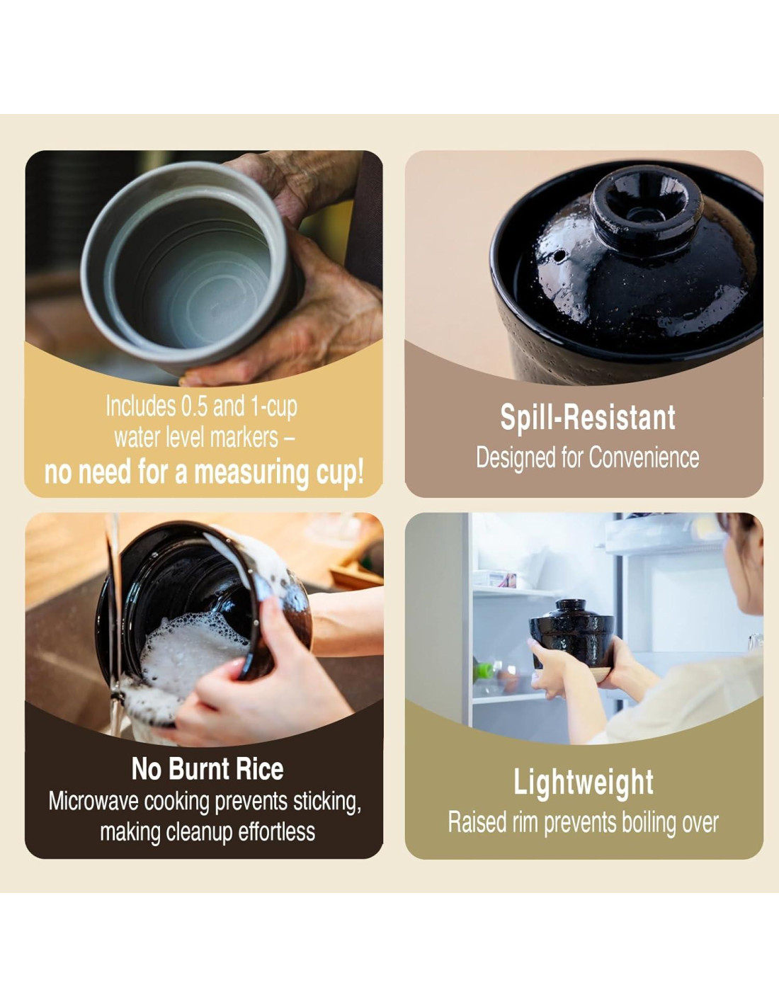 - COCINA RÁPIDA: Logra un delicioso arroz en olla de barro en solo 10 minutos usando tu microondas, con marcadores de nivel de agua incorporados para mediciones precisas