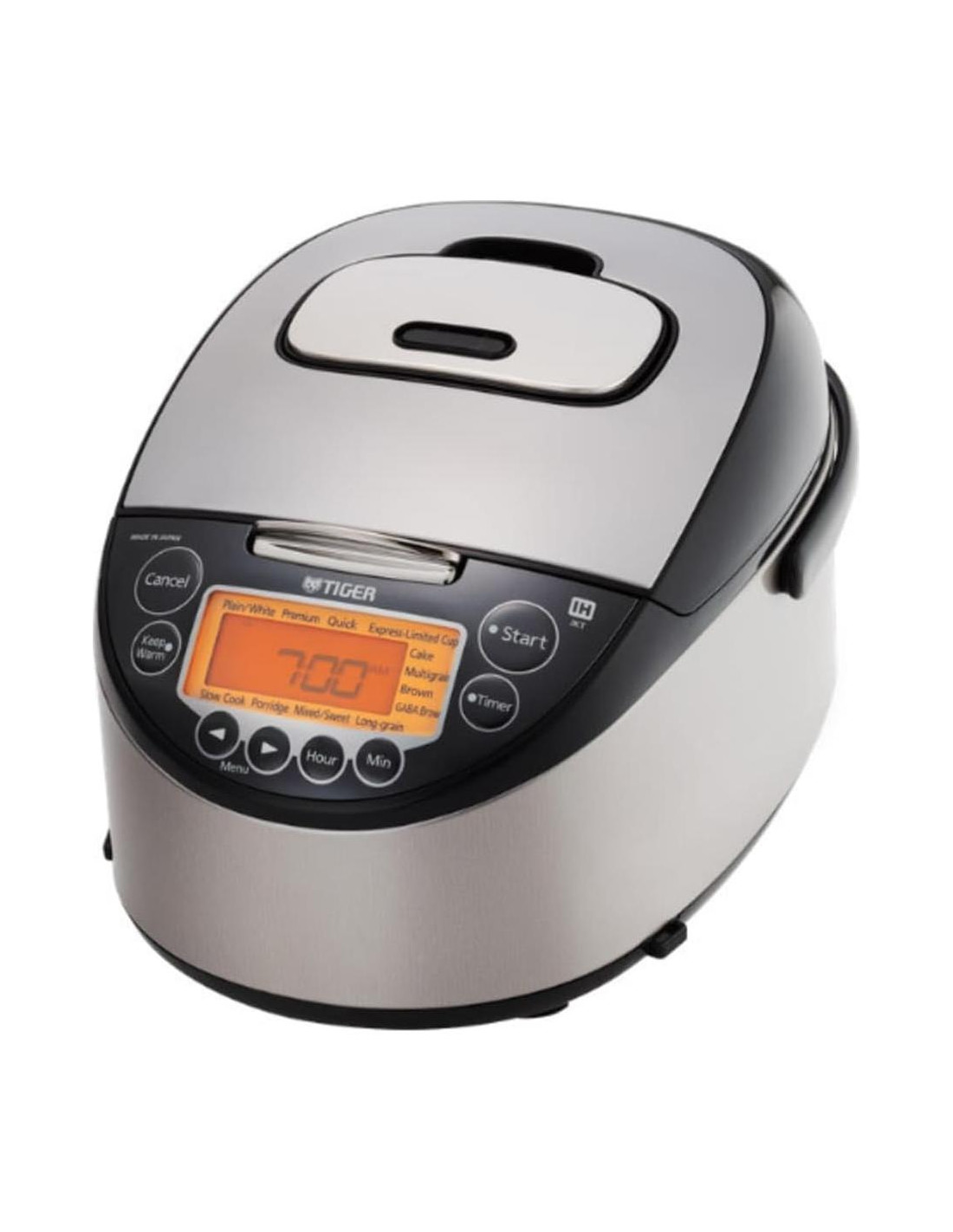 La arrocera avanzada Tiger JKT-D10U utiliza tecnología de calentamiento por inducción de última generación para proporcionar calor de manera uniforme alrededor de toda la olla interior. Este sistema de calentamiento avanzado de la arrocera Tiger cuenta con una olla interior recubierta de cerámica de 1.5mm y 3 capas que ayuda a cocinar de manera más uniforme, produciendo arroz más esponjoso. Esta olla interior de la arrocera también tiene dos asas que facilitan su transporte y limpieza. Con una preparación mínima y solo presionando un botón, el sistema de lógica de cocción automática de Tiger monitorea activamente las temperaturas de cocción para crear la comida perfecta. La arrocera Tiger JKT-D10U puede cocinar hasta 5.5 tazas de arroz seco a la vez. Esta arrocera Tiger tiene configuraciones controladas por sincronicidad que incluyen Arroz Blanco, Cocción Premium, Cocción Rápida, Tazas Limitadas Expresas, Arroz Multigrano, Arroz de Grano Largo, Arroz Integral, Arroz Integral GABA, Gachas, Arroz Mezclado/Dulce, Cocción Lenta y controles para Hornear Pasteles. Esta arrocera avanzada cuenta con una configuración de Menú Expreso que puede cocinar una cantidad limitada de arroz blanco en tan solo 17 minutos. También cuenta con una conveniente función de Mantener Caliente que permite mantener el arroz caliente durante hasta 24 horas, una tapa de vapor desmontable y una tapa interior que facilitan la limpieza de esta arrocera, y un hermoso diseño exterior negro plateado que hace de esta arrocera el accesorio de cocina perfecto para cualquier cocina.
