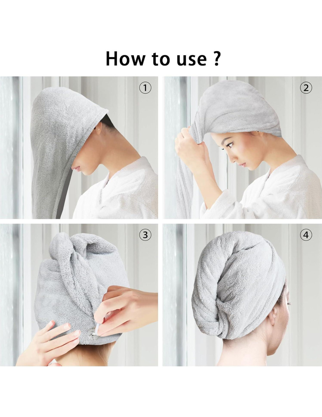 - SÚPER ABSORBENTE: Las toallas para el cabello están hechas de un material de microfibra súper absorbente, altamente absorbente para un secado rápido del cabello y ahorrando tu tiempo
