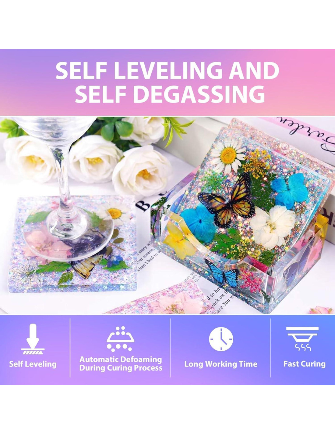 - Resina Epóxica Autonivelante y Sin Burbujas - Fórmula Premium de Grado Profesional para un Acabado Similar al Vidrio. Las resinas epóxicas Pnente están formuladas para ser autonivelantes y autodesgasificantes, asegurando una superficie suave, de alto brillo y cristalina cada vez. No más preocupaciones por burbujas de aire - nuestra fórmula premium reduce significativamente las burbujas, dejándote con un acabado impecable, similar al vidrio, que es tanto claro como duradero. Para los mejores resultados, aplica cada capa no más gruesa que 1/4 de pulgada (0.64 cm) para lograr una suavidad y claridad óptimas.