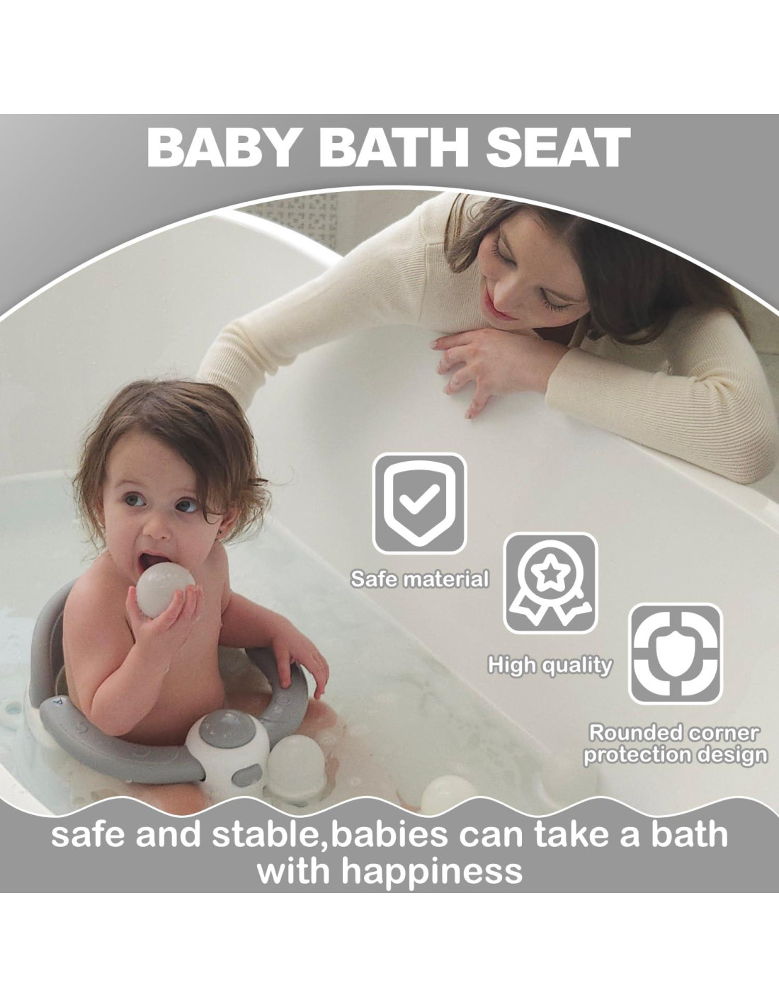 - Hecho de materiales de alta calidad y duraderos, una combinación de PP y TPR, este asiento de baño para bebés es 100% seguro para su uso, suave para la piel, fácil de limpiar y certificado por la CPSC para tranquilidad. El acolchado antideslizante y el respaldo ofrecen comodidad y seguridad adicionales, y el diseño mejorado del asiento permite que el agua llegue en todas las direcciones para una limpieza a fondo.