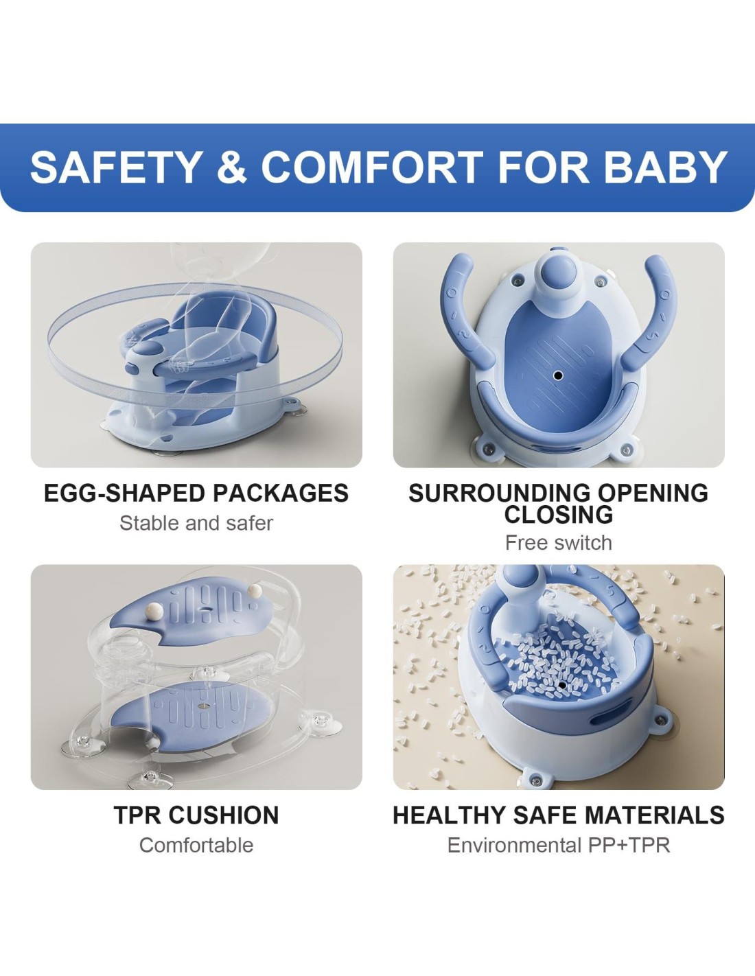- Facilidad de Baño para Bebés: Diseñado para infantes de 6 meses en adelante, nuestro asiento de baño para bebés ofrece diversión y conveniencia durante el baño. Libera las manos de mamá, permitiendo una interacción más relajada y agradable con su hijo. Es un cambio de juego para los padres que buscan un tiempo de baño más relajante.