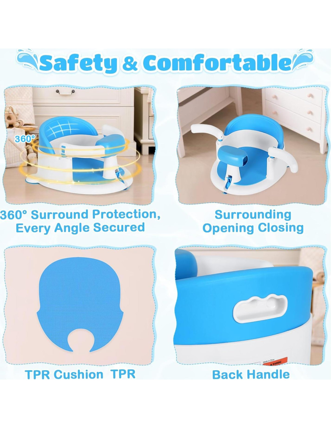 - Regalo preferido. Nuestro asiento de baño para niños se puede usar en la bañera, sala de estar o ducha, perfecto para viajar y uso en casa, es un regalo perfecto para familiares y amigos o para su propio uso.