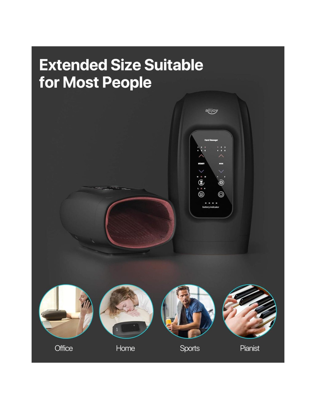 - Alivio del Dolor de Mano: La función de calor y vibración hace buen uso de calor suave y vibración para fortalecer el efecto del masaje, lo que ayuda a aliviar dedos adormecidos, dolor en las articulaciones, artritis, dolor del túnel carpiano, manos frías y otros síntomas; Recomendamos comenzar con la intensidad más baja