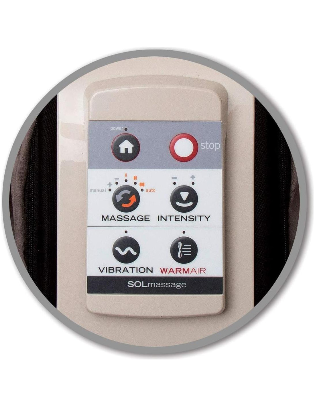 - Nota: Sentarse o estar de pie sobre tu masajeador de pies y pantorrillas podría resultar en lesiones personales y/o daños permanentes al masajeador. El masajeador de pies y pantorrillas Reflex SOL limita automáticamente tu masaje a un intervalo ideal de 15 minutos. Para reiniciar, simplemente vuelve a seleccionar tu conjunto de masaje favorito. Peso del producto - 25 lbs (11,34 kg), peso bruto (en la caja) - 32 lbs (14,51 kg)