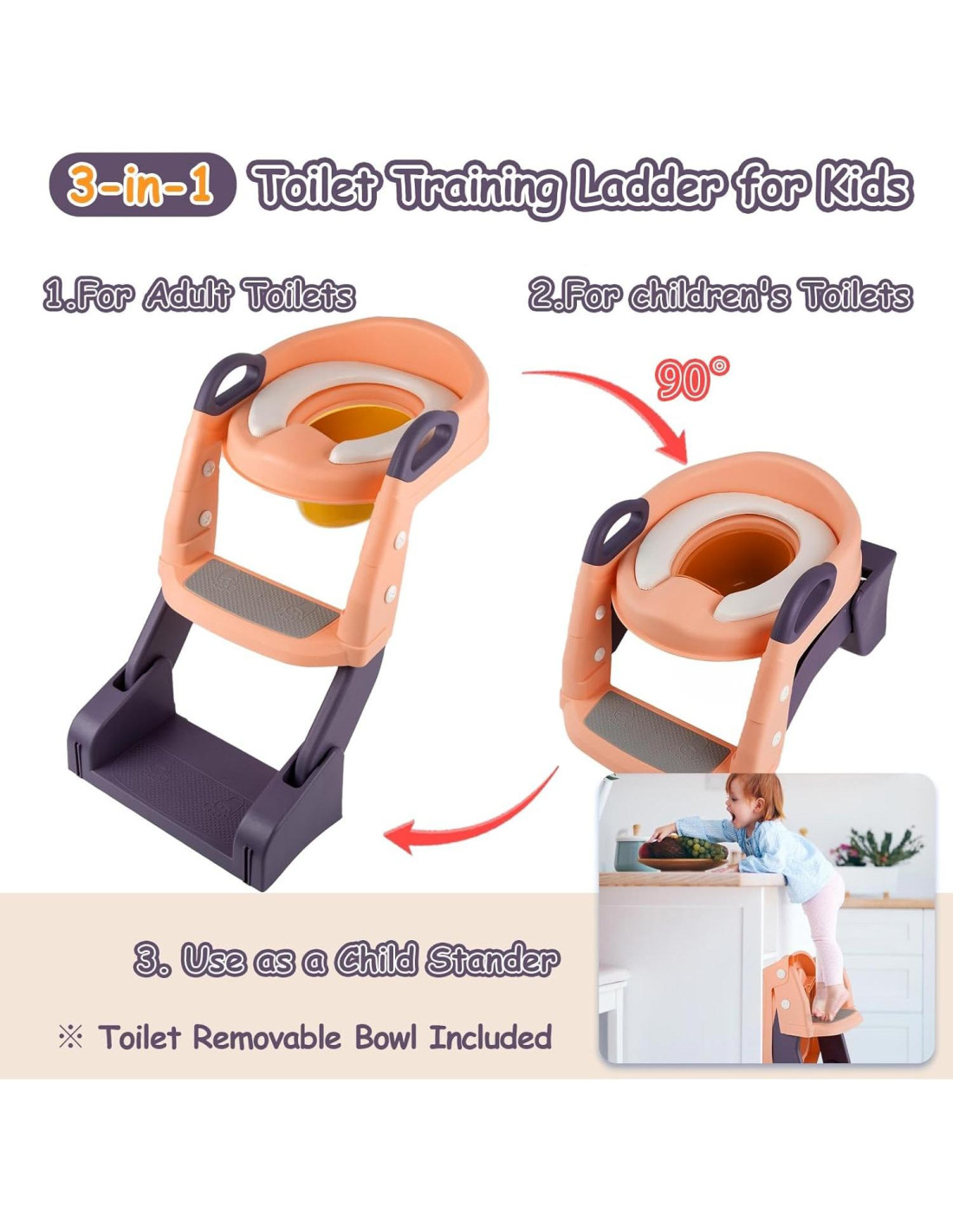 - NUEVO ASIENTO DE ENTRENAMIENTO PARA BEBÉS 3 EN 1 Nuestro Asiento de Entrenamiento para el Baño 3 en 1 también viene con un inodoro a juego que se puede usar como un inodoro separado para niños, o desplegarse para convertirse en un asiento de entrenamiento para el baño con escalera utilizado con un inodoro de adulto, lo que lo hace ideal para niños en todas las etapas de la práctica del baño.