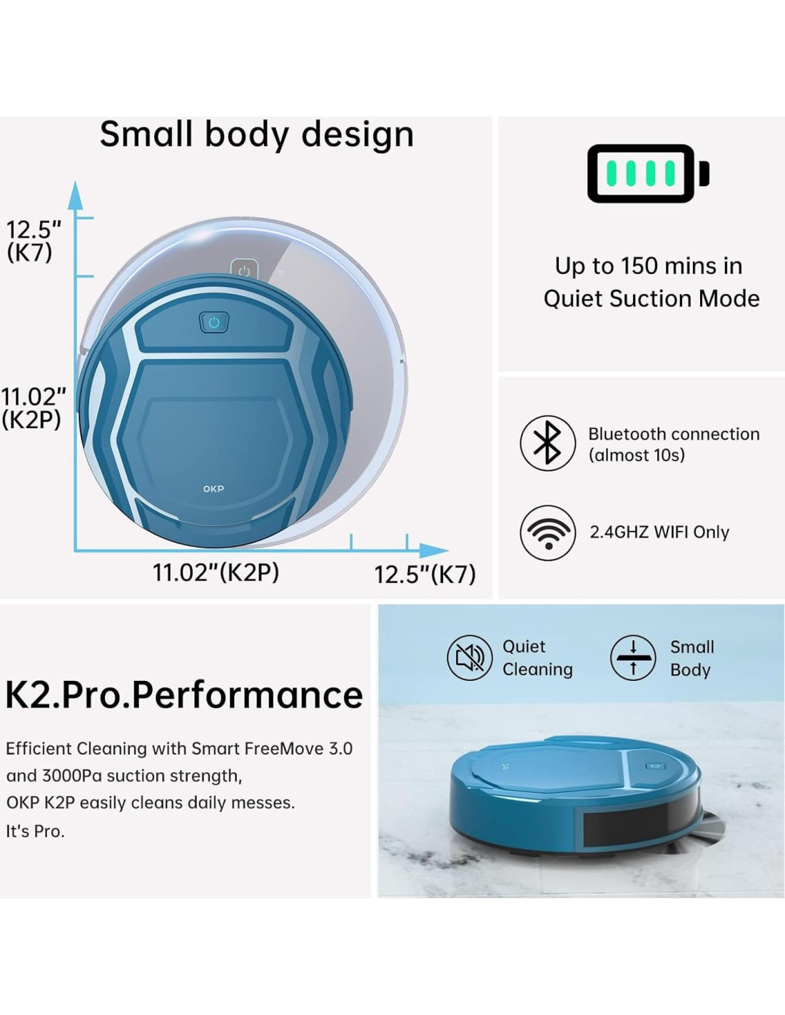 - LIMPIEZA SIN COSTURAS - La aspiradora robot OKP tiene un tamaño de cuerpo compacto con un ancho de 280mm y una altura de 78mm, y la aspiradora robot también tiene función de carga automática. Puedes disfrutar fácilmente de una limpieza sin costuras sin operar manualmente la carga y posicionamiento de la aspiradora robot. Al mismo tiempo, su diseño compacto asegura una cobertura de limpieza integral.