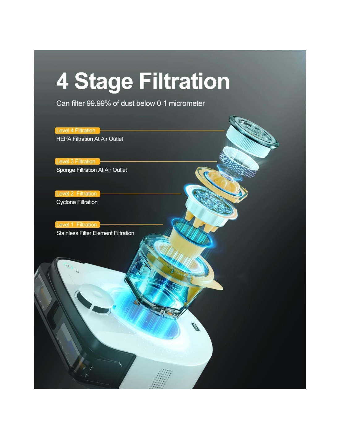 - La potencia de succión del robot aspirador autovaciable es de 6 a 10 veces más fuerte que la de los aspiradores robóticos ordinarios. Este Robot Aspirador y Mopa Combo - succión potente aborda fácilmente varios desafíos de limpieza, haciendo que nuestras vidas sean más relajadas y cómodas.