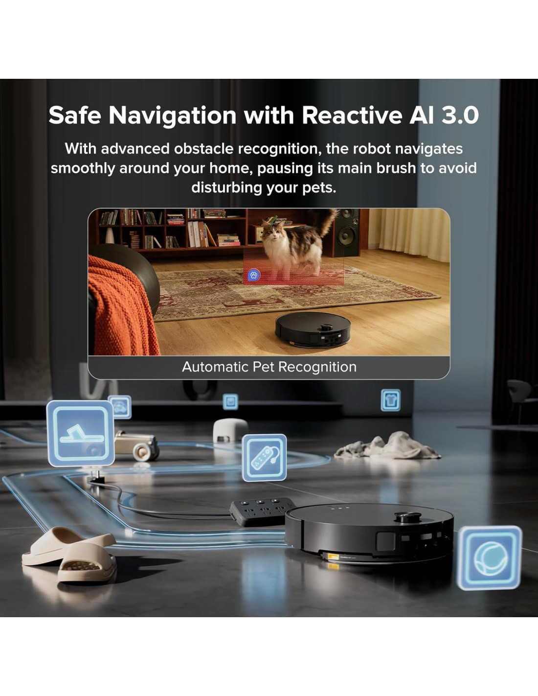 - Característica especial: Más Soporte de Control de Voz de Terceros, Control de Voz Inteligente Offline, Matter 2.0, Características Amigables para Mascotas, Cepillo Sin Enredos al 0%, Limpieza Completa de Borde a Borde, Chasis de Elevación Inteligente, Autolimpieza de Base de Agua Caliente, Lavado de Mopa Dinámico a 176F (80C), Secado de Aire Caliente a 140F (60C), Sistema de Navegación RetractSense 360, Reconocimiento de Obstáculos con Algoritmos AI 3.0, Detección Inteligente de Suciedad