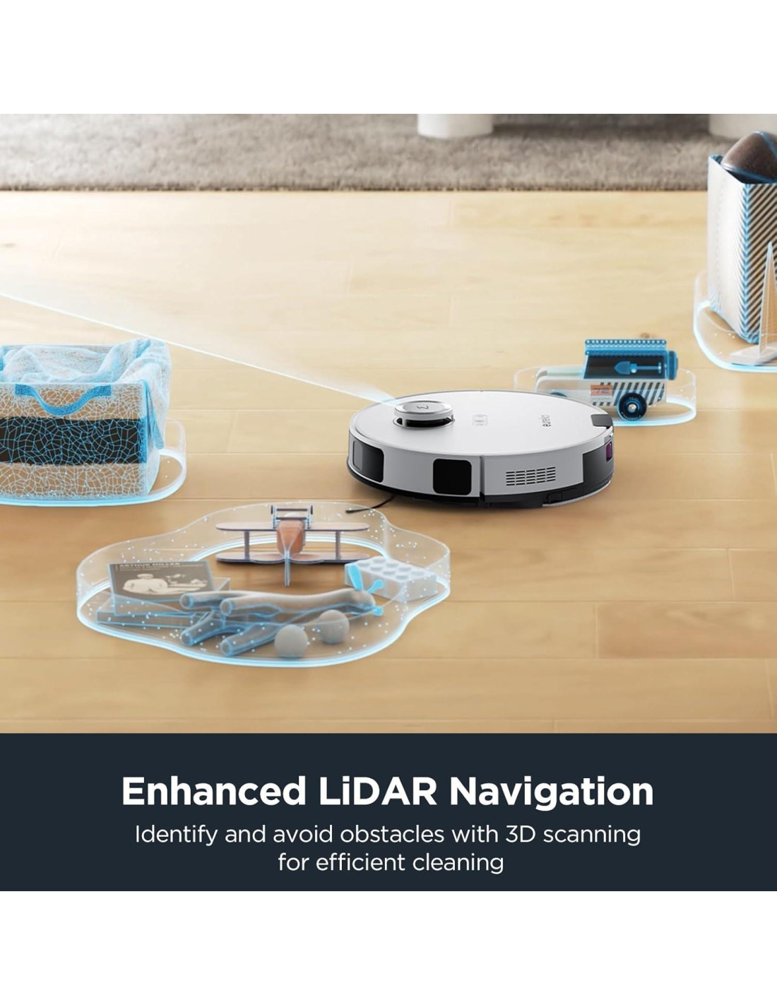 - Navegación LiDAR de Precisión: Más cuidado, menos problemas. El mapeo LiDAR permite rutas de barrido inteligentes que evitan repeticiones y omisiones mientras detectan obstáculos para mejorar la seguridad del barrido. La tecnología PSD ayuda a limpiar esquinas y bordes de muebles.