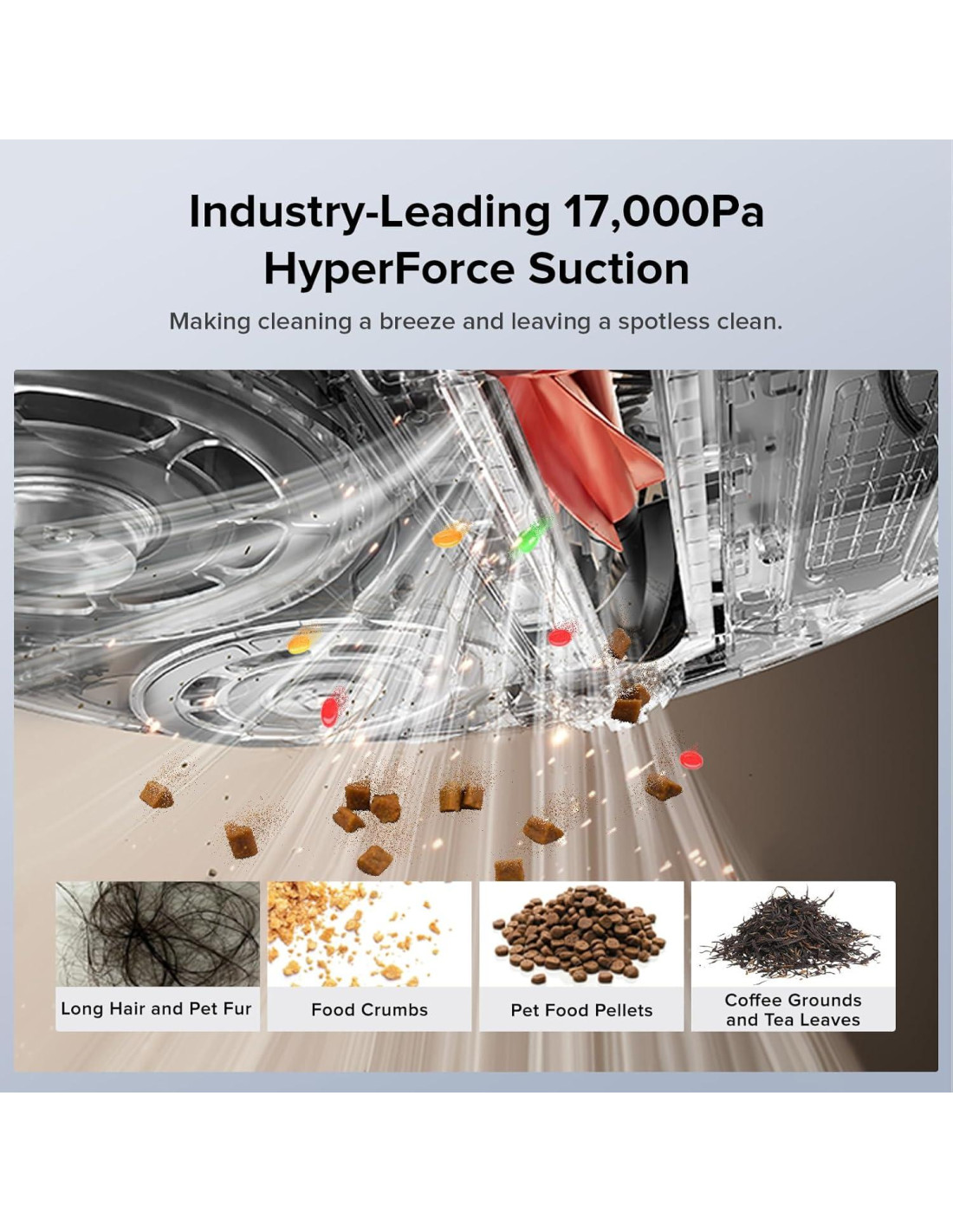- Poder de Limpieza Inigualable: Disfruta de una succión HyperForce líder en la industria de 17,000 Pa. Con hasta 17,000 Pa de succión fuerte, supera fácilmente todos los desafíos de limpieza, levantando poderosamente cabello, escombros, polvo y suciedad de alfombras y pisos duros hacia el cubo de basura.