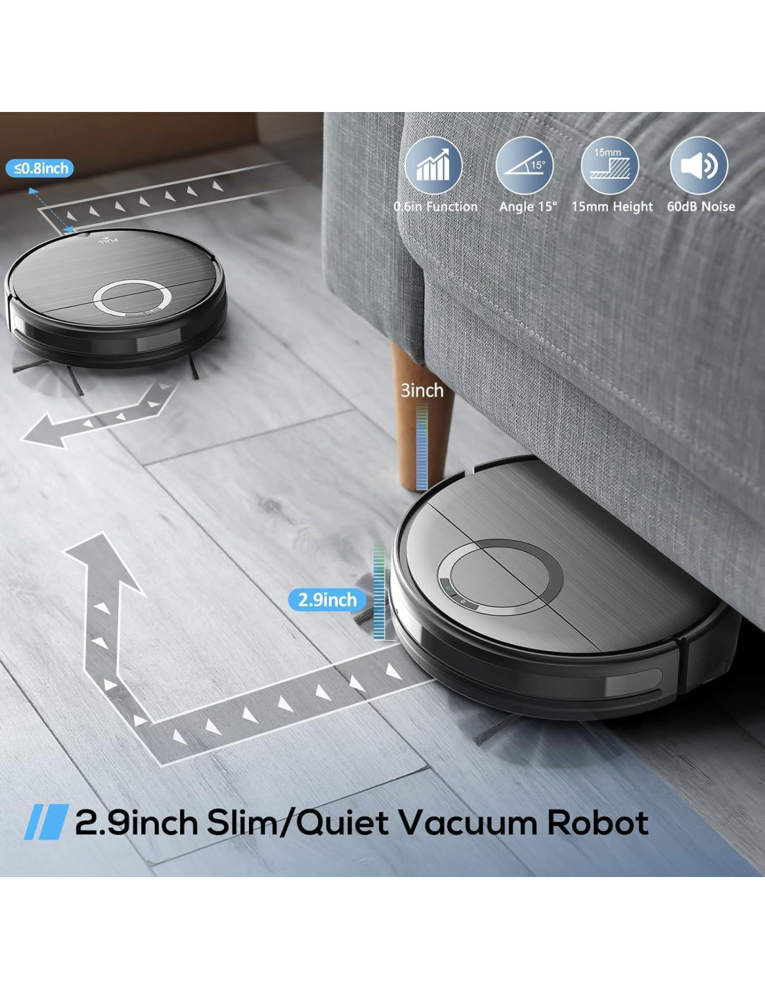 - MÁS INTELIGENTE Y SILENCIOSA: Nuestra aspiradora y mopa robot T7S está equipada con 15 conjuntos de sensores infrarrojos inteligentes que reconocen y evitan inteligentemente paredes blancas, escaleras y obstáculos. La aspiradora robot puede subir hasta 15 y puede cruzar fácilmente umbrales o alfombras. El diseño delgado de 2.90 pulgadas llega fácilmente a lugares de difícil acceso debajo de los muebles, limpia áreas residuales sucias y mantiene tu casa ordenada. La aspiradora y mopa robot T7S está diseñada para ser utilizada en una variedad de aplicaciones.