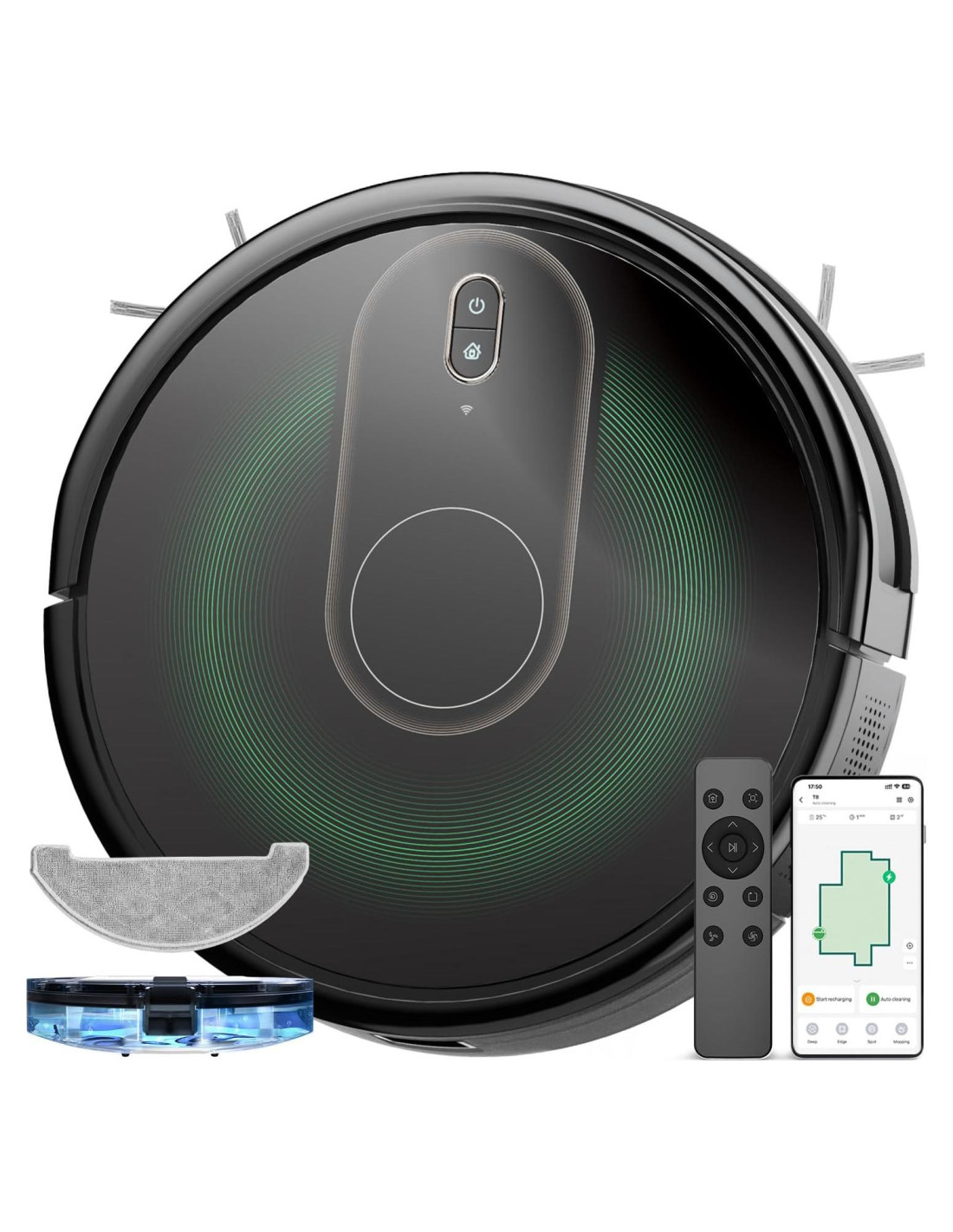 - [Fácil de iniciar el Robovac] Controla nuestra aspiradora robot con facilidad usando la app, Siri, Google Home o comandos de voz de Alexa. Incluso sin Wifi, también puedes iniciarlo con Bluetooth o control remoto de mano, lo que hace que el combo de aspiradora y trapeador T8 sea muy amigable para padres y ancianos. ( La APP solo soporta WiFi de 2.4GHz, no 5G.)