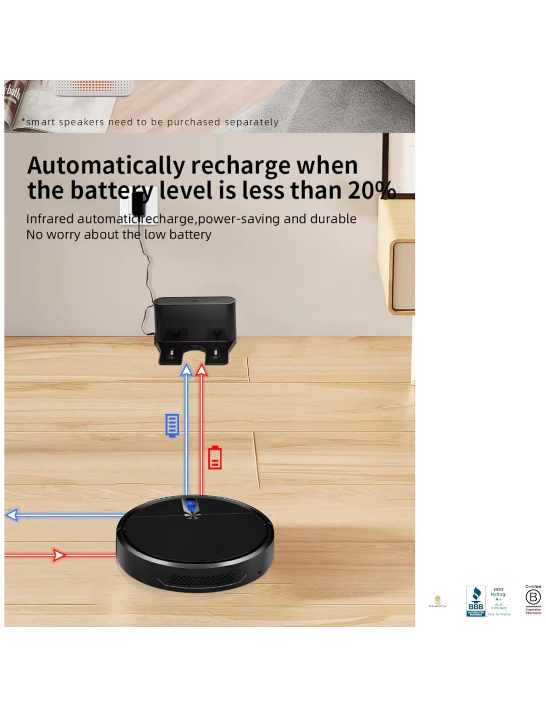 - Limpieza Mejorada de 2500Pa y Auto-Carga: con una succión de 2500Pa, esta máquina limpia tu suelo en 120 minutos y se recarga cuando la batería está baja. Con 5-6 horas de tiempo de recarga, después de completar una larga limpieza.