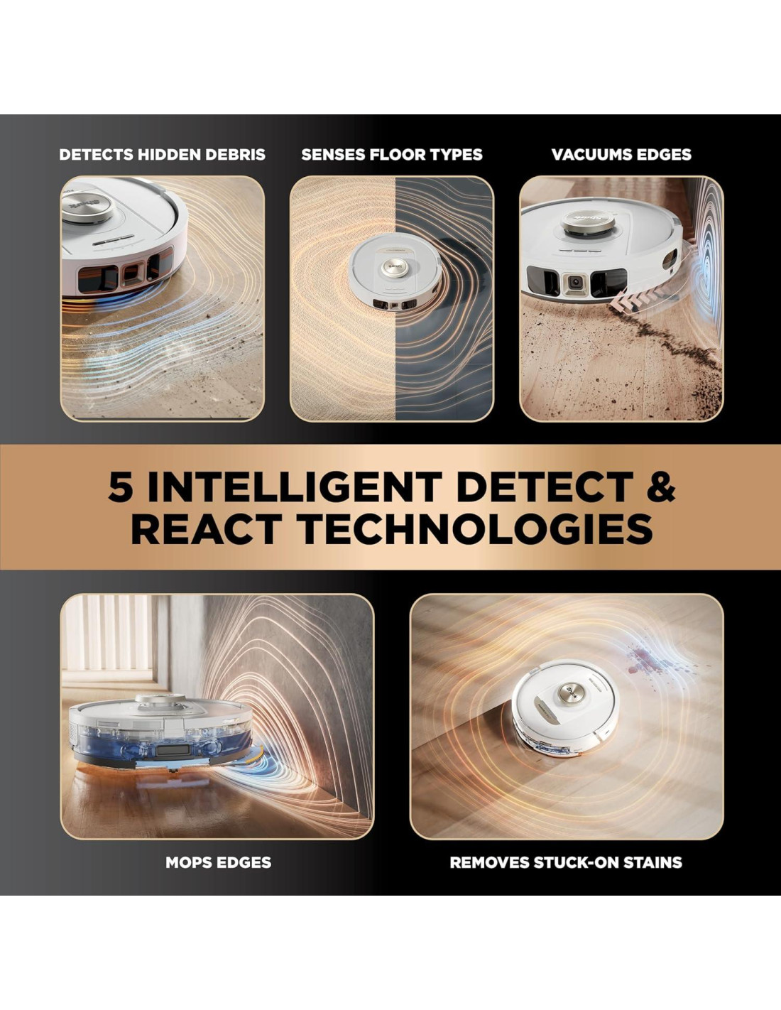 - LIMPIA TIERRA OCULTA Y MANCHAS ADHERIDAS: DirtDetect identifica áreas con más desechos y luego aumenta el rendimiento de aspirado. Usa StainDetect para apuntar a áreas con más manchas y el robot aumentará el rendimiento de trapeo al realizar múltiples pasadas de limpieza.