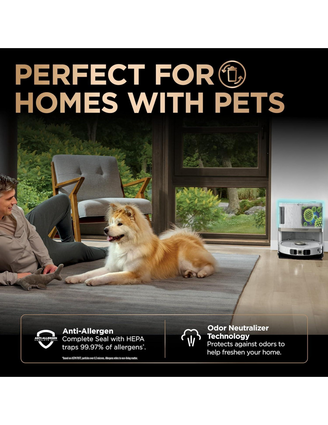 - HASTA UN MES DE LIMPIEZA Y MANTENIMIENTO SIN MANOS: El robot vacía automáticamente los desechos en el contenedor de 60 días de capacidad, rellena automáticamente su propio tanque de agua durante hasta 30 días y lava y seca la almohadilla de trapeo después de cada limpieza.