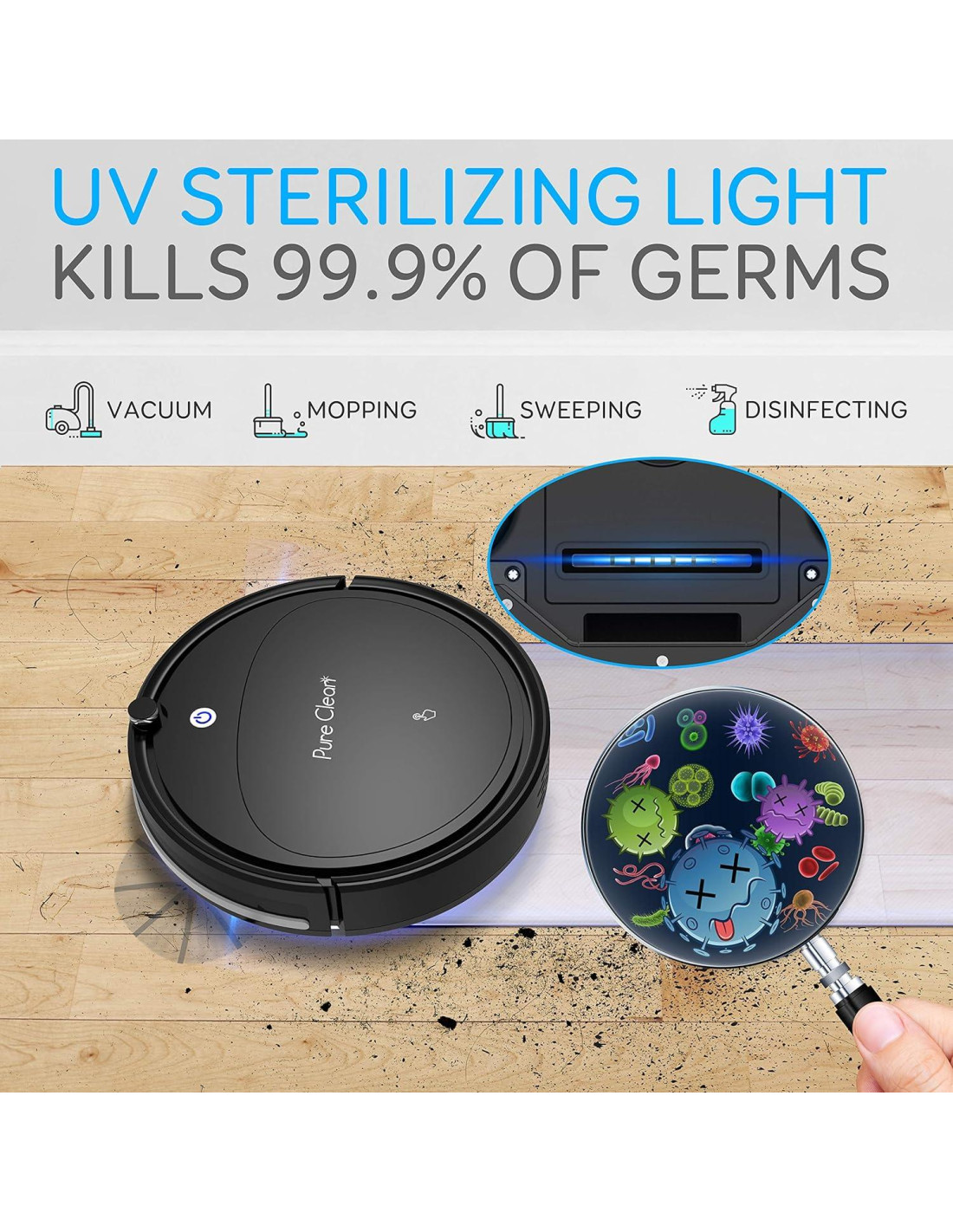 - DETECCIÓN DE OBSTÁCULOS: Los limpiadores robóticos PureClean cuentan con detección de obstáculos y limpian alrededor de objetos o muebles. También están equipados con sensores anticaída y carcasa protectora para evitar que el robot caiga por las escaleras