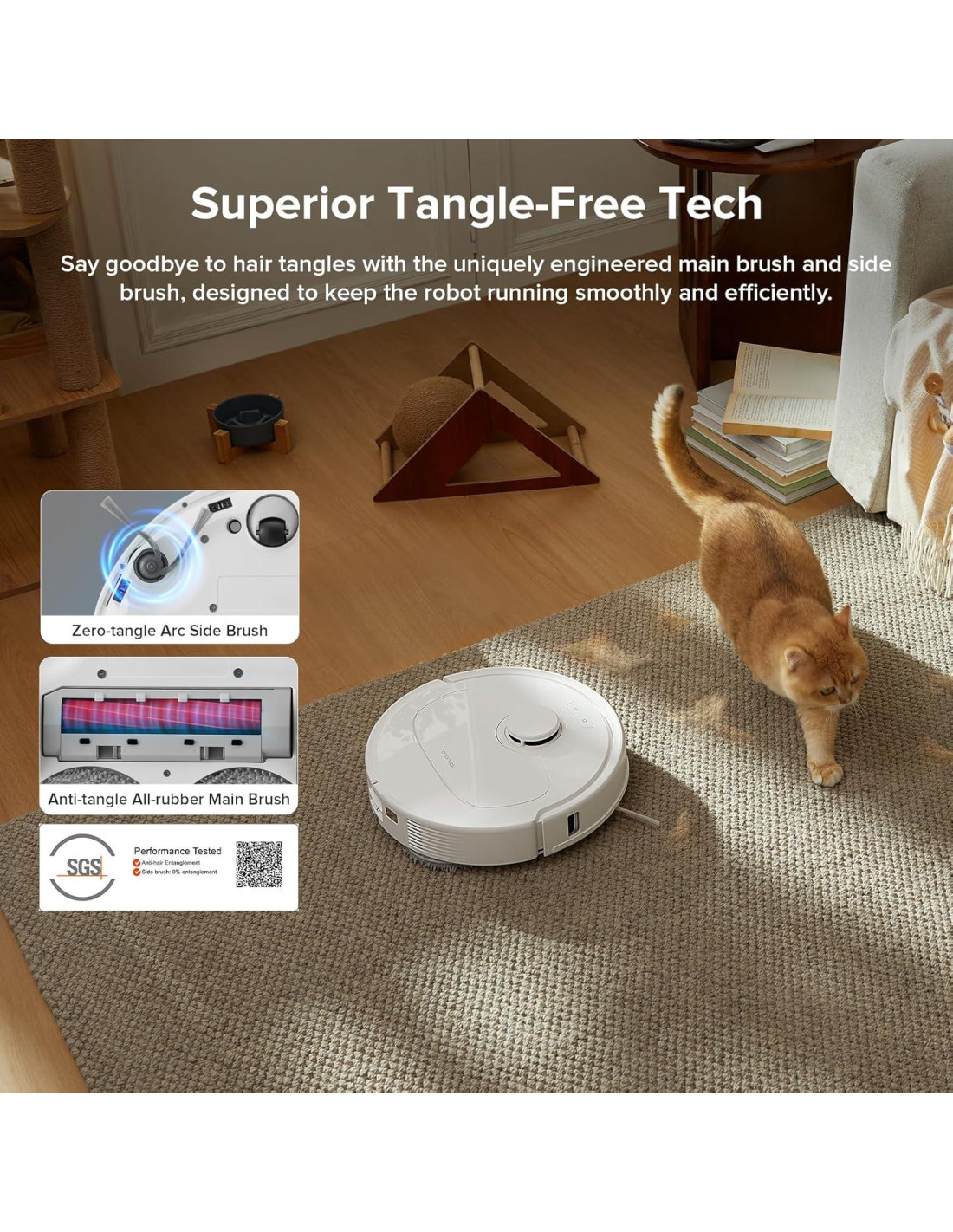 - Trapeadores giratorios duales con elevación de 10mm: Mejora el cuidado del suelo y elimina manchas difíciles con dos paños de limpieza de alta velocidad que giran a 200RPM. Los 30 niveles de agua ajustables ayudan a la aspiradora robot a adaptarse a todos los tipos de suelo, desde maderas delicadas hasta azulejos. La función de elevación de 10mm le permite hacer la transición sin problemas a alfombras de pelo bajo, asegurando que no haya desorden húmedo y una versatilidad de limpieza completa.