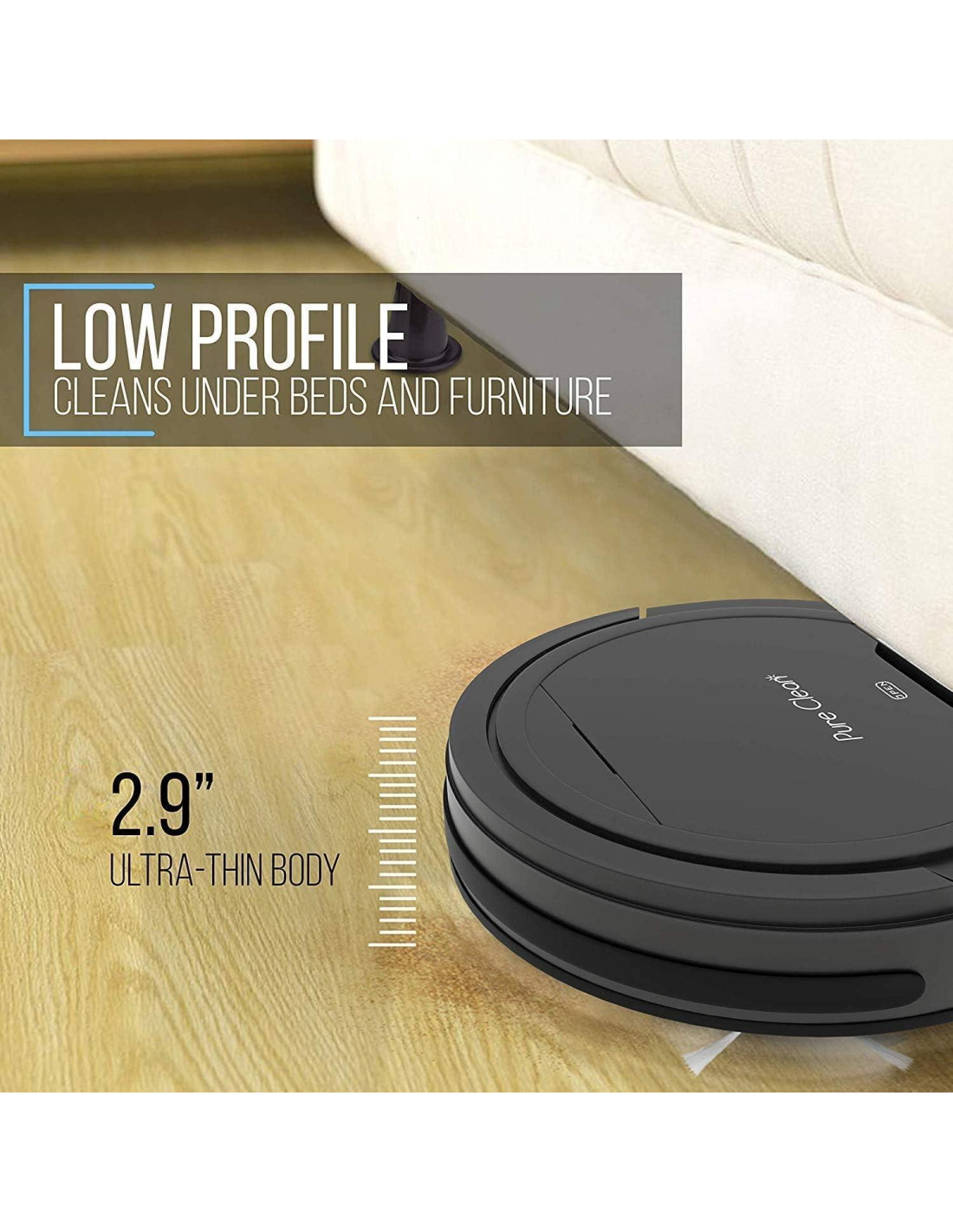 - 2.9 PULGADAS DE PERFIL ULTRA BAJO: el robot aspirador eléctrico blanco presenta un perfil delgado de 2.9 pulgadas que aspira a través de cualquier comedor o piso de cocina y es lo suficientemente pequeño como para caber debajo de los muebles, sofá o cama en tu casa