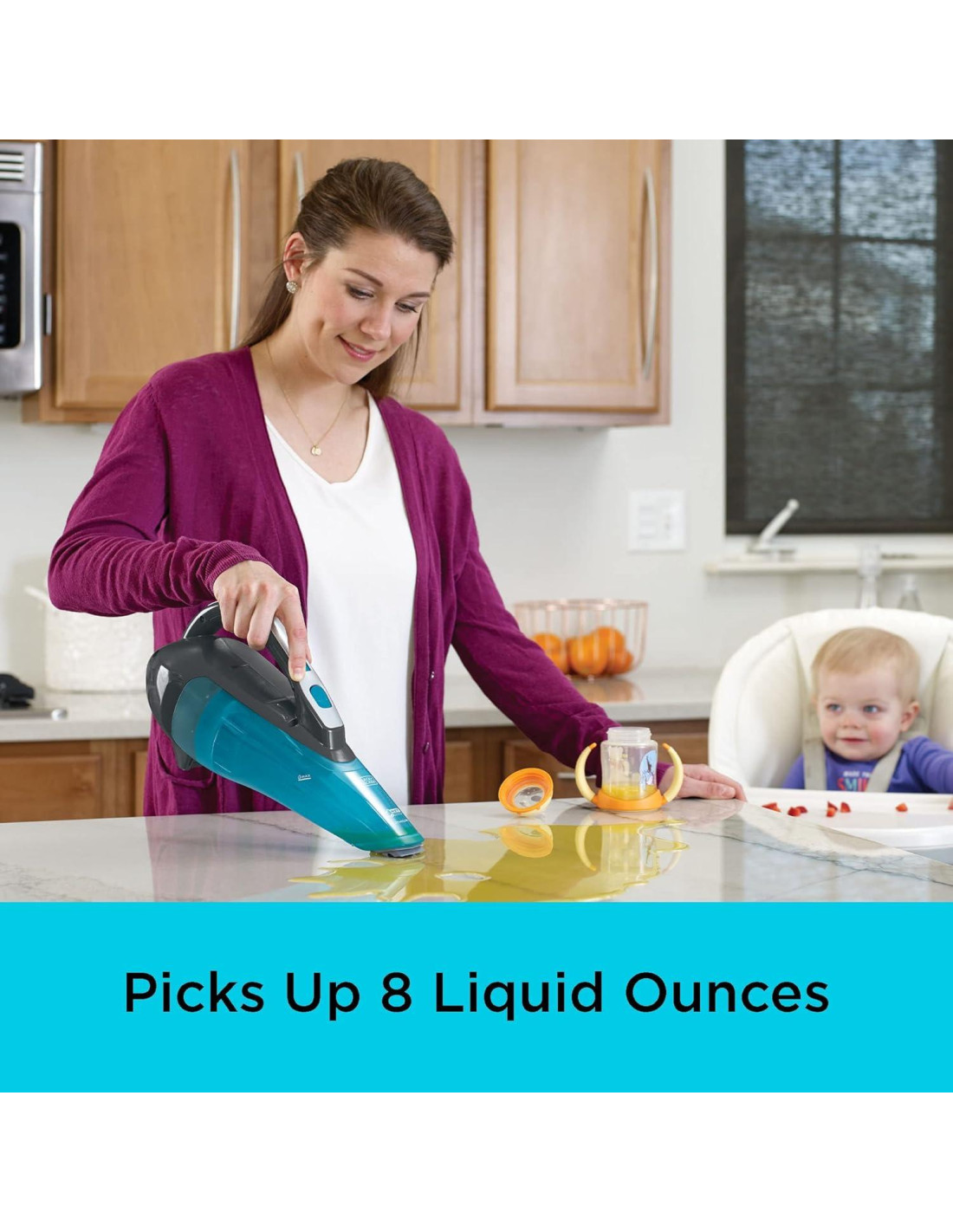Enfrenta todo tipo de desorden en el hogar con la versátil aspiradora de mano inalámbrica húmeda/seca dustbuster AdvancedClean de BLACK+DECKER. Está equipada con un accesorio de escobilla de goma que es ideal para recoger derrames líquidos de hasta 8 oz (236,59 ml). Una potente batería de iones de litio soporta la fuerte succión de esta aspiradora de mano, permitiéndote limpiar polvo y escombros sólidos también. El recipiente de suciedad translúcido te permite ver dentro, así que siempre sabrás cuándo vaciarlo. Además, tanto el recipiente de suciedad como el filtro se pueden enjuagar directamente en el fregadero. El conveniente soporte de pared te permite cargar y almacenar la aspiradora al mismo tiempo, y una luz indicadora te notifica cuando la aspiradora está completamente cargada y lista para el próximo trabajo.