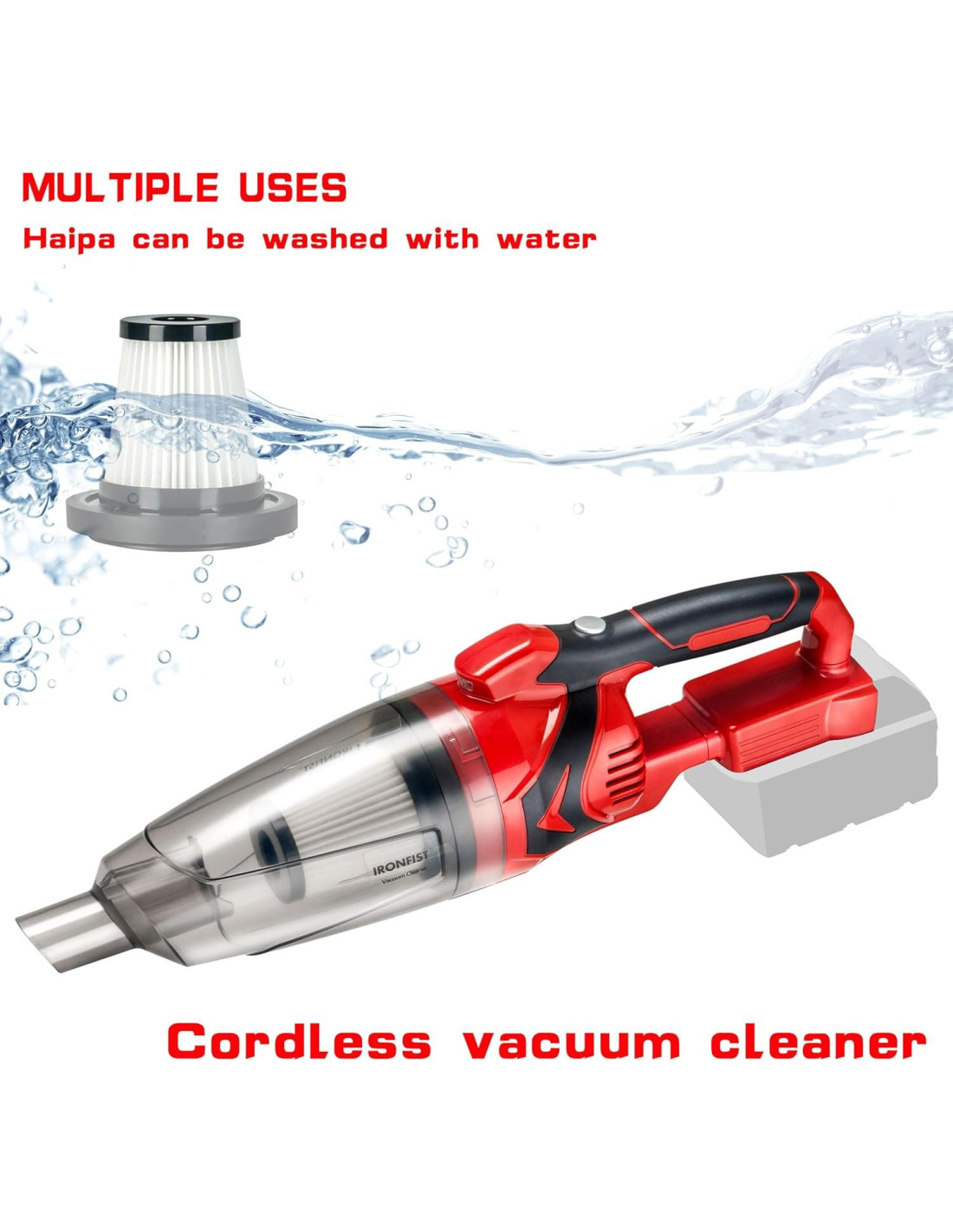 Aspiradora inalámbrica IRONFIST compatible con una variedad de baterías Milwaukee M18 de 18V Li-Ion incluyendo 48-11-1811, 48-11-1815, 48-11-1820, 48-11-1822, 48-11-1828, 48-11-1840, 48-11-1841, 48-11-1850, etc. Esta aspiradora de palo está equipada con un motor de alta potencia de 140W, puede generar hasta 10kPa de succión potente, perfecta para suelos de madera, suelos de mármol, azulejos, alfombras de pelo bajo y puede recoger fácilmente todo tipo de partículas como polvo, pelo de mascotas, arena para mascotas, restos de comida, etc. Esta aspiradora para pelo de mascotas es fácil de operar. Con un solo clic se puede iniciar la aspiradora, no es necesario mantener presionado el interruptor. El filtro es lavable y reutilizable, por favor déjelo secar antes de volver a colocarlo. Esta aspiradora pequeña es ligera, lo que la hace adecuada para personas de diferentes edades. Deshágase de los cables enredados y resuelva problemas de difícil acceso. Puede ir prácticamente a cualquier lugar que necesite y seguir funcionando como lo pretendía. La aspiradora es fácil de ensamblar y tiene 4 cabezales de accesorio diferentes: cepillo principal para suelos y cepillo circular pequeño y cepillo 2 en 1 y cepillo para sofá. 2 varillas de extensión. Pistola de calor Inflador de neumáticos Amoladora angular de 5" Taladro de impacto Motosierra de 8" Soplador de polvo Pulidor de coche