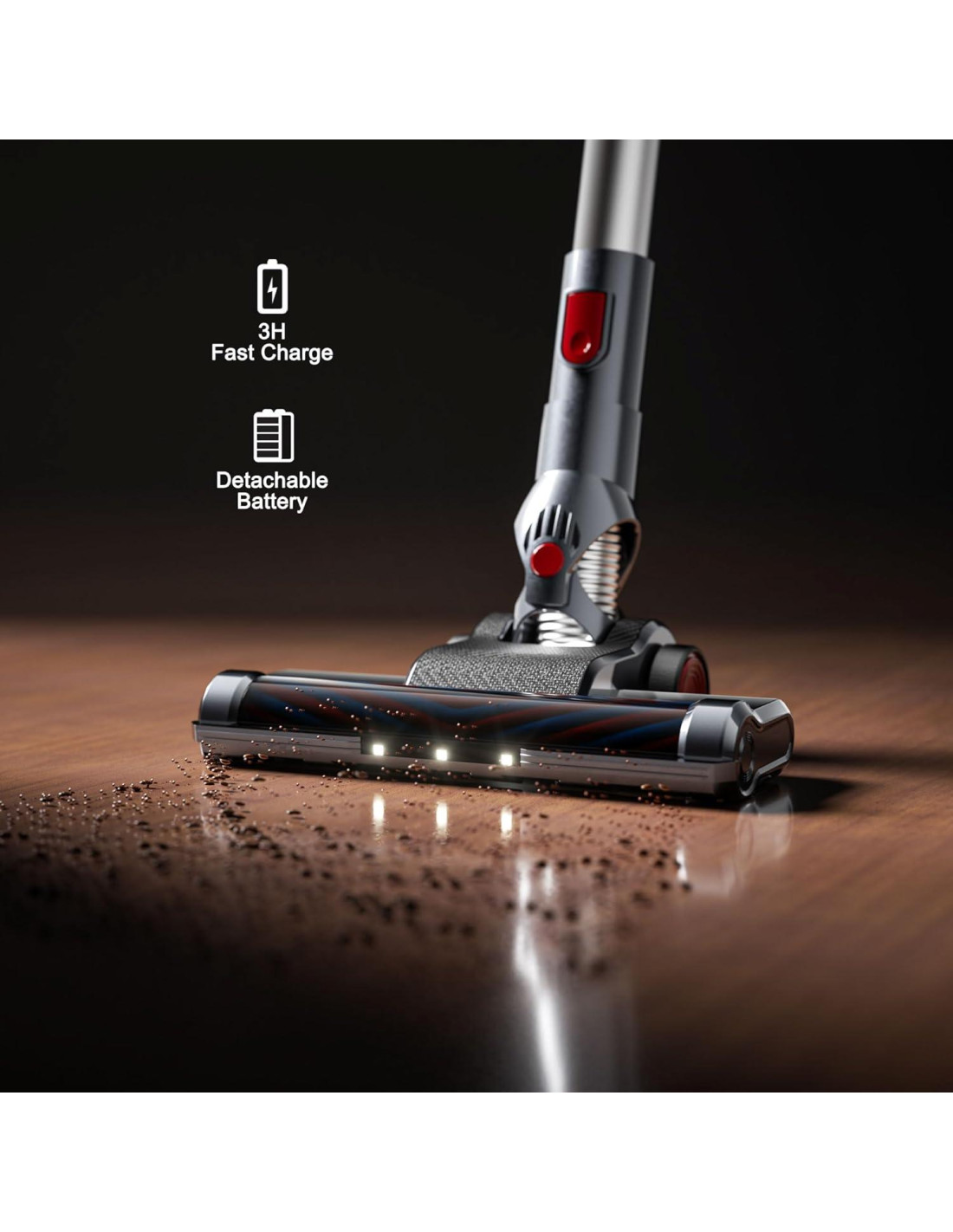 - Motor Potente: Equipado con un motor sin escobillas mejorado, esta potente aspiradora inalámbrica ofrece una succión excepcional y viene con dos modos ajustables. Esta aspiradora para el hogar inalámbrica es perfecta para limpiar polvo, pelo de mascotas y escombros de pisos de madera dura, baldosas, mármol y alfombras de pelo bajo