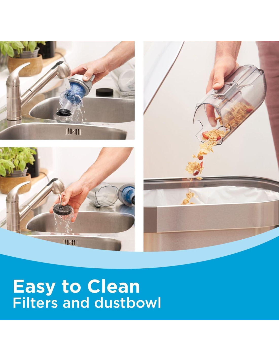 - Filtración ciclónica: ayuda a mantener tu filtro limpio para un rendimiento óptimo de la aspiradora