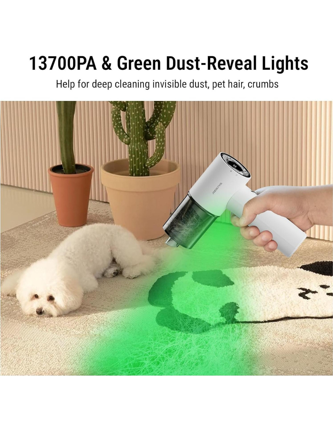--Con la luz verde Reveladora de Polvo, descubres el polvo oculto y el pelo de mascota que amenazan silenciosamente la salud de tu familia. ¡Detecta y limpia rápidamente para una experiencia de vida verdaderamente prístina!