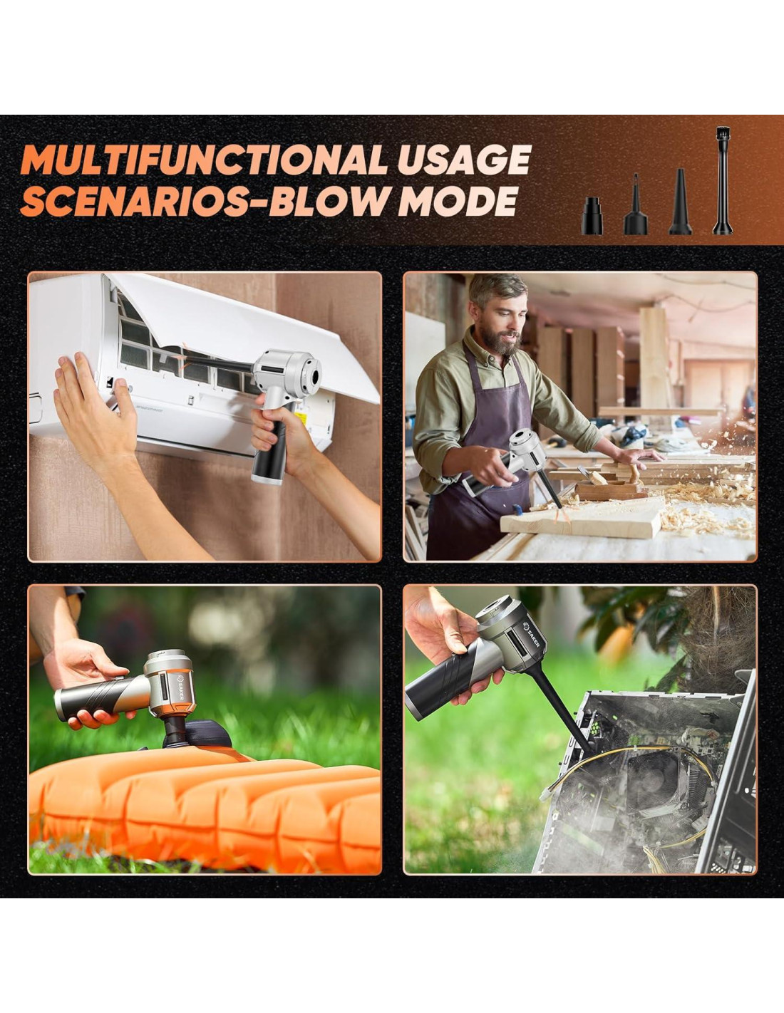 - [Accesorios Prácticos] El tubo de extensión incluido puede limpiar fácilmente rincones de difícil acceso, y la funda con un cepillo puede eliminar fácilmente el polvo persistente en las grietas. Con el conjunto de accesorios de soplado, puede inflar rápidamente el anillo de natación y el kayak, y también puede ayudar con la combustión en barbacoas al aire libre, ayudar a los carpinteros a soplar el aserrín y aspirar bolsas de almacenamiento. Los ricos accesorios pueden hacer su vida más conveniente. Este conjunto también es adecuado como regalo para el Día del Padre.