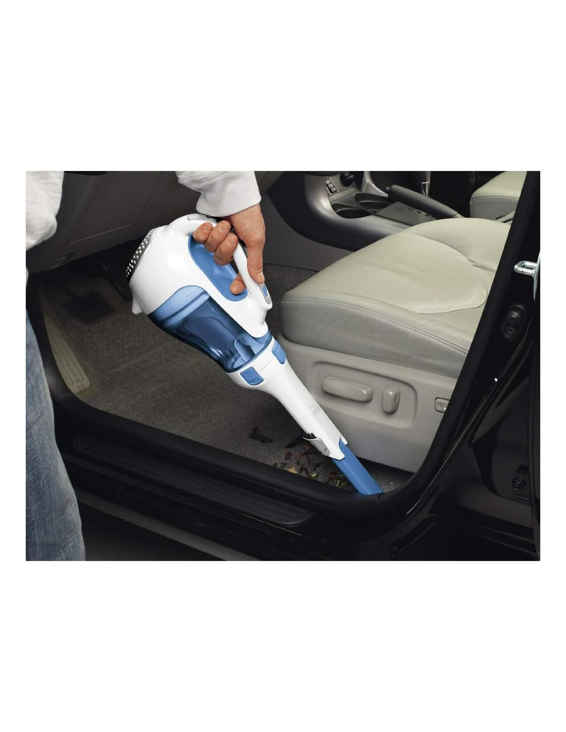 La aspiradora de mano inalámbrica BLACK+DECKER HHVI320JR02 dustbuster (Azul Mágico) es ideal para limpieza multipropósito, utilizada como aspiradora para el hogar, aspiradora para el garaje, aspiradora para el automóvil o aspiradora para el bote. La tecnología de litio proporciona una fuerte succión y un tiempo de funcionamiento prolongado. Tiene un recipiente lavable (20.6 oz. - 581,44 ml) y un filtro que permite una limpieza a fondo entre trabajos. El recipiente de suciedad translúcido y sin bolsa facilita ver la suciedad y vaciarlo. Esta aspiradora de mano recargable tiene una boquilla rotativa para una posición cómoda de la mano al acceder a áreas de difícil acceso, junto con una herramienta de hendidura extensible que proporciona acceso a áreas de difícil acceso y un cepillo plegable que permite desempolvar y aspirar tapicería. La acción ciclónica ayuda a mantener el filtro limpio y la succión fuerte. 2.0Ah. Esta aspiradora tiene un diseño ligero y portátil que facilita la limpieza. Un soporte de pared proporciona una solución de almacenamiento versátil. Incluye: aspiradora de mano, cargador de enchufe Jack, soporte de pared, herramienta de hendidura extensible, cepillo plegable. La boquilla rotativa te brinda una posición cómoda de la mano al acceder a áreas de difícil acceso.