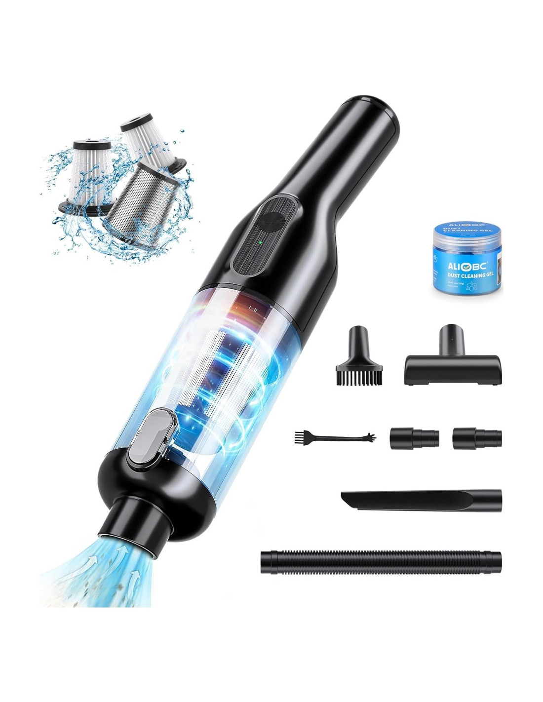 - Múltiples Accesorios, Limpieza Profunda: Las aspiradoras ALIOBC para el hogar y el coche están equipadas con una variedad de accesorios que pueden satisfacer la limpieza en una variedad de escenarios de uso. La boquilla plana es ideal para alcanzar espacios estrechos y rincones como las ranuras de las puertas del coche y los espacios entre los asientos. El cepillo tiene las funciones duales de aspirar y limpiar, que es adecuado para la limpieza del polvo en la superficie de reposapiés de sofá, alfombras y teclados. La boquilla de manguera extendida proporciona flexibilidad para alcanzar los lugares deseados.