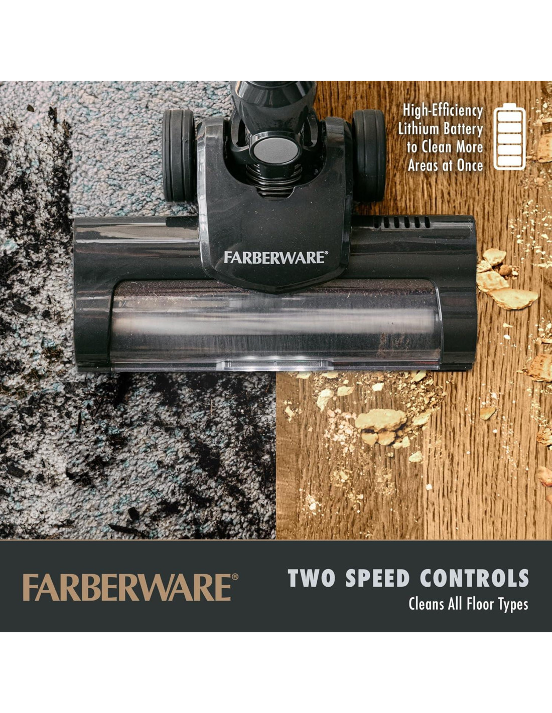 - CONTROL DE 2 VELOCIDADES - Con 2 controles de velocidad, la aspiradora sin cable de Farberware te permite personalizar tu potencia según el tamaño del desorden. Usa la configuración baja para desordenes fáciles con polvo y suciedad ligera, mientras que la configuración de alta velocidad enfrenta grandes desordenes con facilidad.