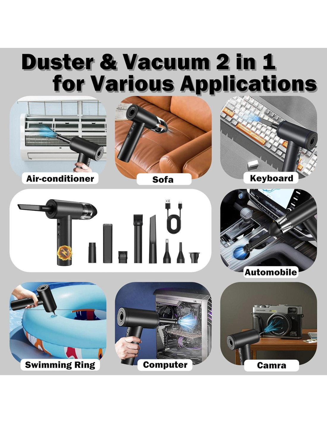 - Combo de Limpieza Poderoso: ¡Diga adiós al polvo con nuestra aspiradora de aire 2 en 1! Perfecta para PC, coche, aspiradora de teclado y limpieza del hogar, esta aspiradora para teclado ofrece una potencia de soplado de 80.5g y succión de 12500P, ideal para cualquier tarea de limpieza