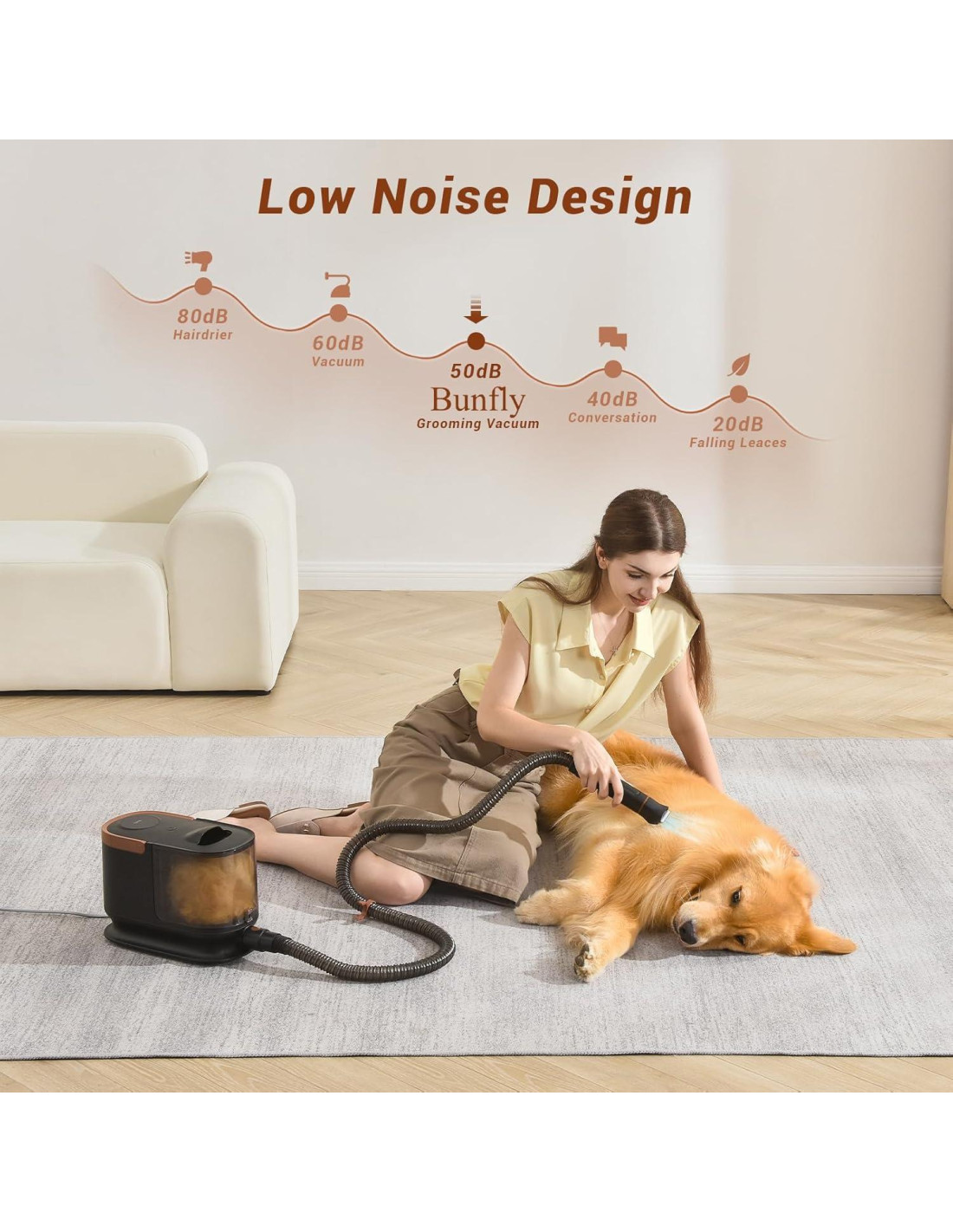 - [Tecnología de Bajo Ruido] Bunfly adopta la última tecnología de reducción de ruido, el ruido es tan bajo como 60db, protegiendo efectivamente la audición sensible de las mascotas. Las mascotas novatas pueden adaptarse lentamente desde la primera marcha. Sugerimos acicalar a tu mascota con nuestro cepillo antes de recortar el pelo de la mascota, tratando a tu mascota con pequeños bocadillos para evitar que se ponga nerviosa por el ruido de la aspiradora, lo que hace que la experiencia de acicalamiento sea aún más agradable.