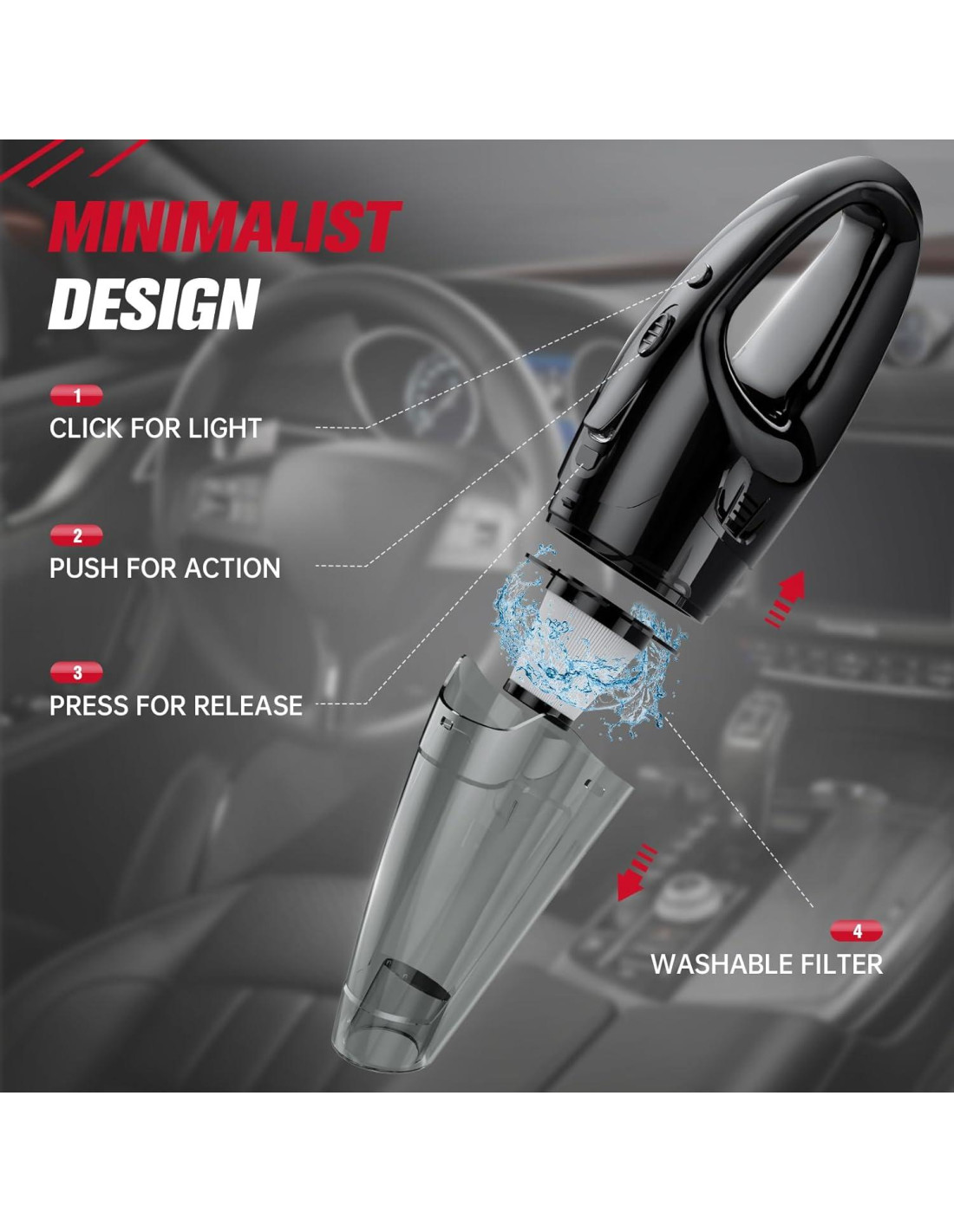 - [Carga rápida y larga duración] Una batería de 2,000 mAh está colocada en la aspiradora portátil compacta, que proporciona de 20 a 30 minutos de potencia duradera. ¡Tienes tiempo suficiente para completar una limpieza, y no necesitarás recargarla durante una semana o menos si haces una limpieza simple en tu auto! Por supuesto, se recarga muy rápido y está al 100% en solo 3 horas!