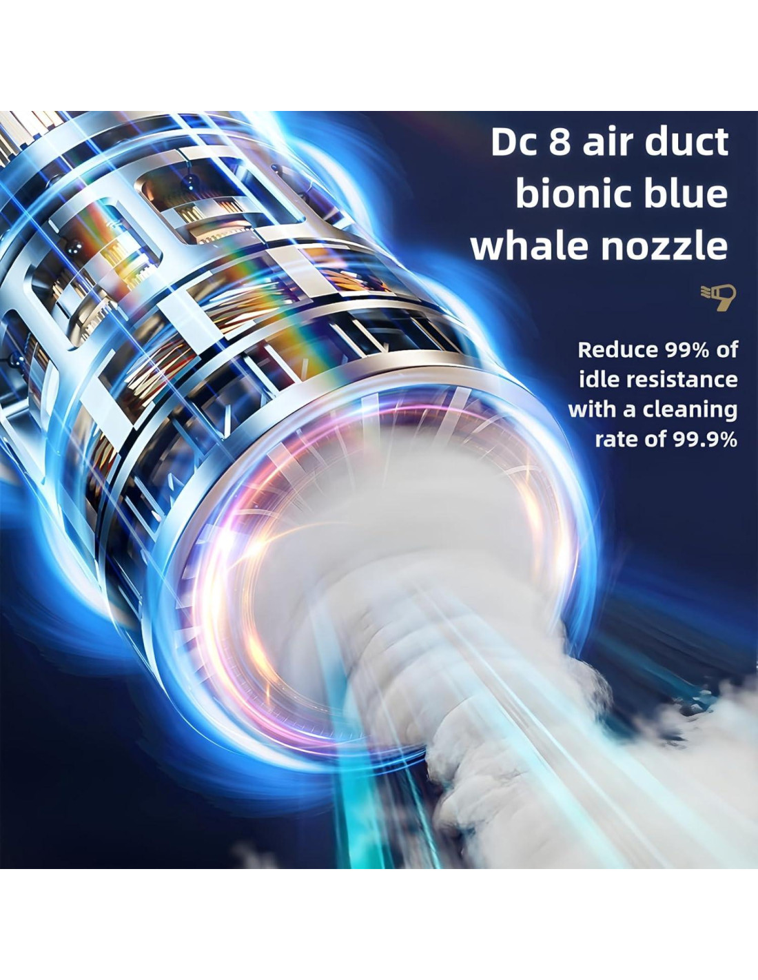 - [Tipo-C y Pantalla de Potencia] La aspiradora utiliza un cable de datos Tipo-C para cargar, el indicador verde en el cable de datos puede recordarle a tiempo que la batería se ha cargado completamente. En el cuerpo del botón, tenemos una configuración de recordatorio de potencia, que le permite cargar la máquina a tiempo.