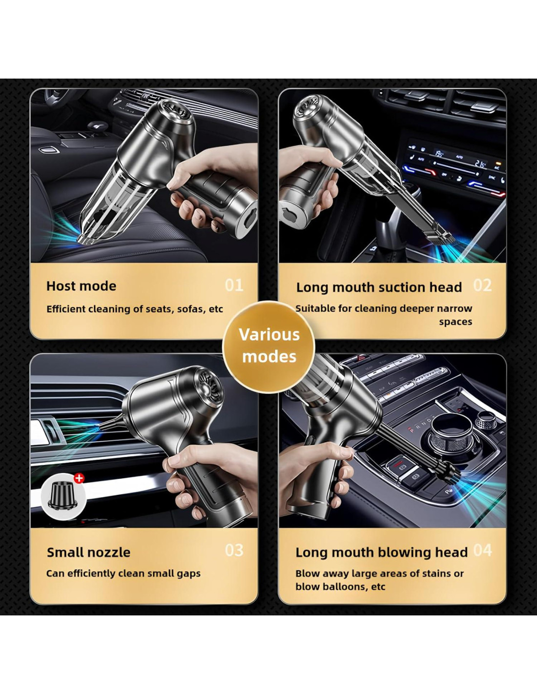 - [Aspiradora Mini 3 en 1] La aspiradora mini está equipada con una variedad de accesorios que pueden satisfacer el soplado, la succión y el bombeo en una variedad de escenarios de uso. No solo puede limpiar rincones difíciles de alcanzar como teclados de computadora y unidades centrales, sino que también puede limpiar grandes manchas en sofás, asientos y otras áreas.