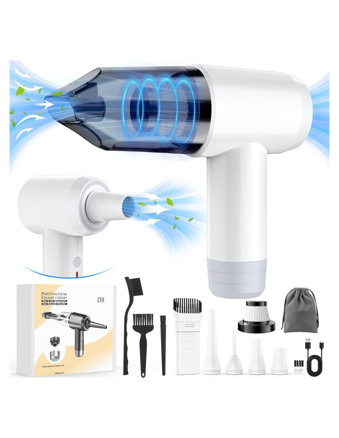 - Aspiradora de Escritorio Compacta y Sin Cable - La aspiradora para computadora no solo es una mini aspiradora, sino también un soplador de aire comprimido (reemplaza las latas de aire comprimido). La mini aspiradora de escritorio mantiene tu escritorio limpio y ordenado y es muy fácil de usar. Comparada con la lata de aire comprimido, nuestro soplador de aire sin cable se puede recargar y usar repetidamente. Gran dispositivo para usar en tus electrónicos, computadoras, escritorio y asientos en la oficina, sala de estar y luego en autos, tablero, cada rincón.
