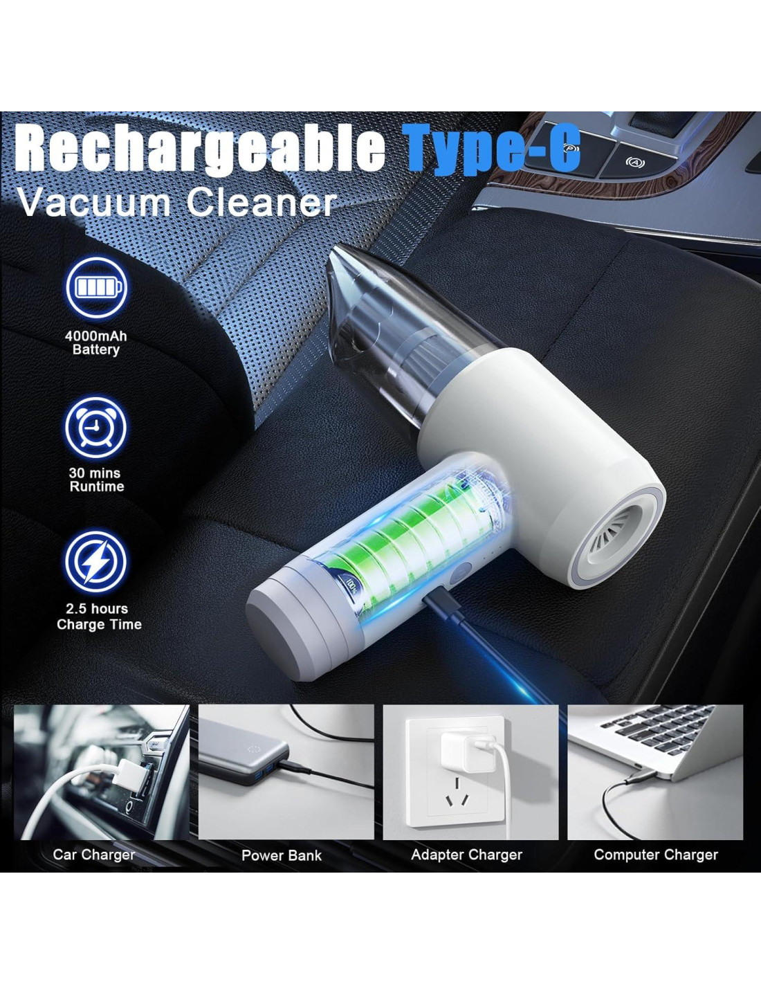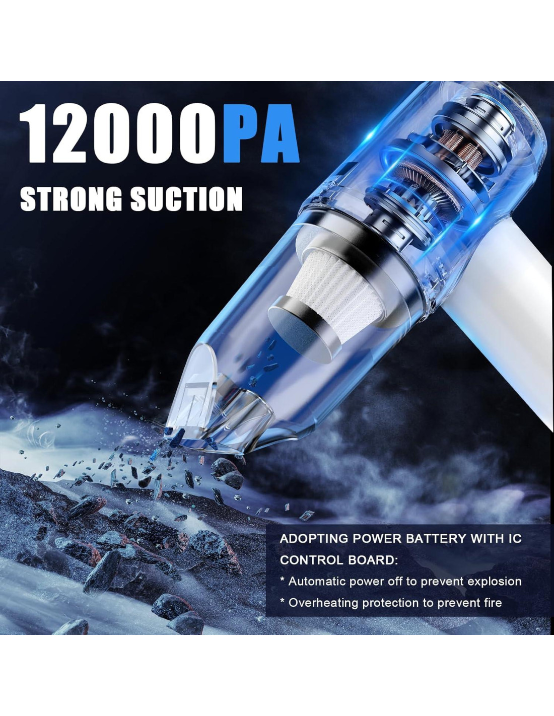 - Protección Única contra Sobrecalentamiento - La seguridad y fiabilidad del producto es crucial. Esta mini aspiradora de mano recargable fácil de guardar utiliza una potente batería que se apaga automáticamente cuando está completamente cargada, previniendo cualquier riesgo de explosión. Además, el soplador de aire comprimido está equipado con una avanzada placa de control IC que incluye protección contra sobrecalentamiento para asegurar el apagado automático en caso de altas temperaturas.