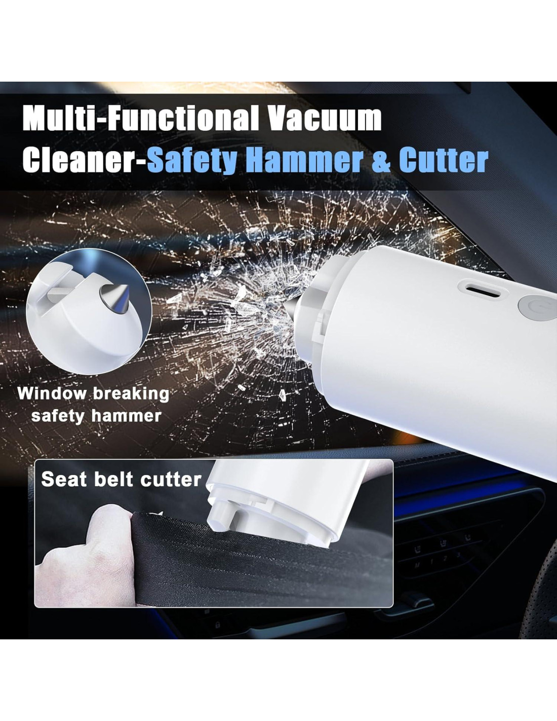 - Herramienta de Escape Única - Como aspiradora de auto, hay dos características especiales: un martillo de seguridad para romper ventanas y un cortador de cinturón de seguridad. En emergencias dentro de un entorno cerrado, el martillo rompedor de ventanas de la aspiradora de auto de alta potencia se puede usar para romper vidrio para escapar. Además, si quedas atrapado por un cinturón de seguridad, tener una aspiradora de auto con un cortador de cinturón de seguridad cerca asegura que puedas liberarte de manera segura y efectiva.