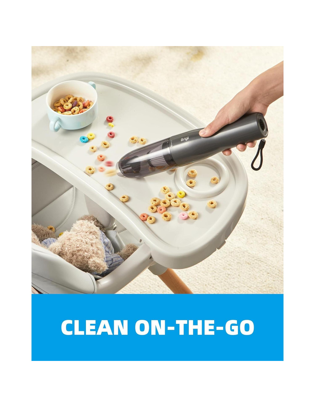 - Carga Conveniente: Carga la aspiradora de mano Brigii en cualquier lugar usando un cable USB-C, ya sea en casa o en tu automóvil. Una vez completamente cargada, proporciona 20 minutos de limpieza continua.